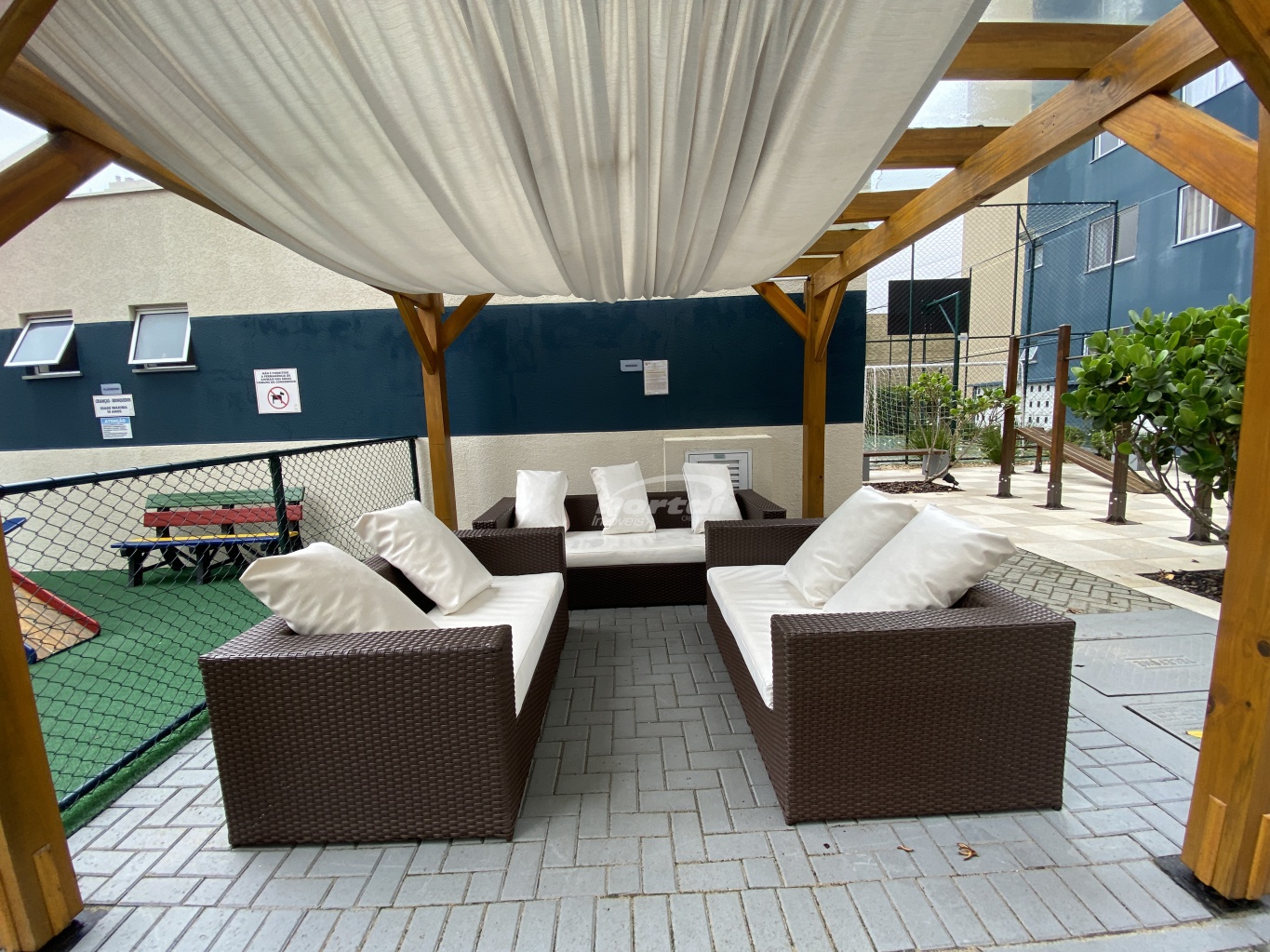 O condomínio possui piscina, playground, quadra, academia, salão de jogos, brinquedoteca, área pet, área gourmet, salão de festas e praça de convivência.