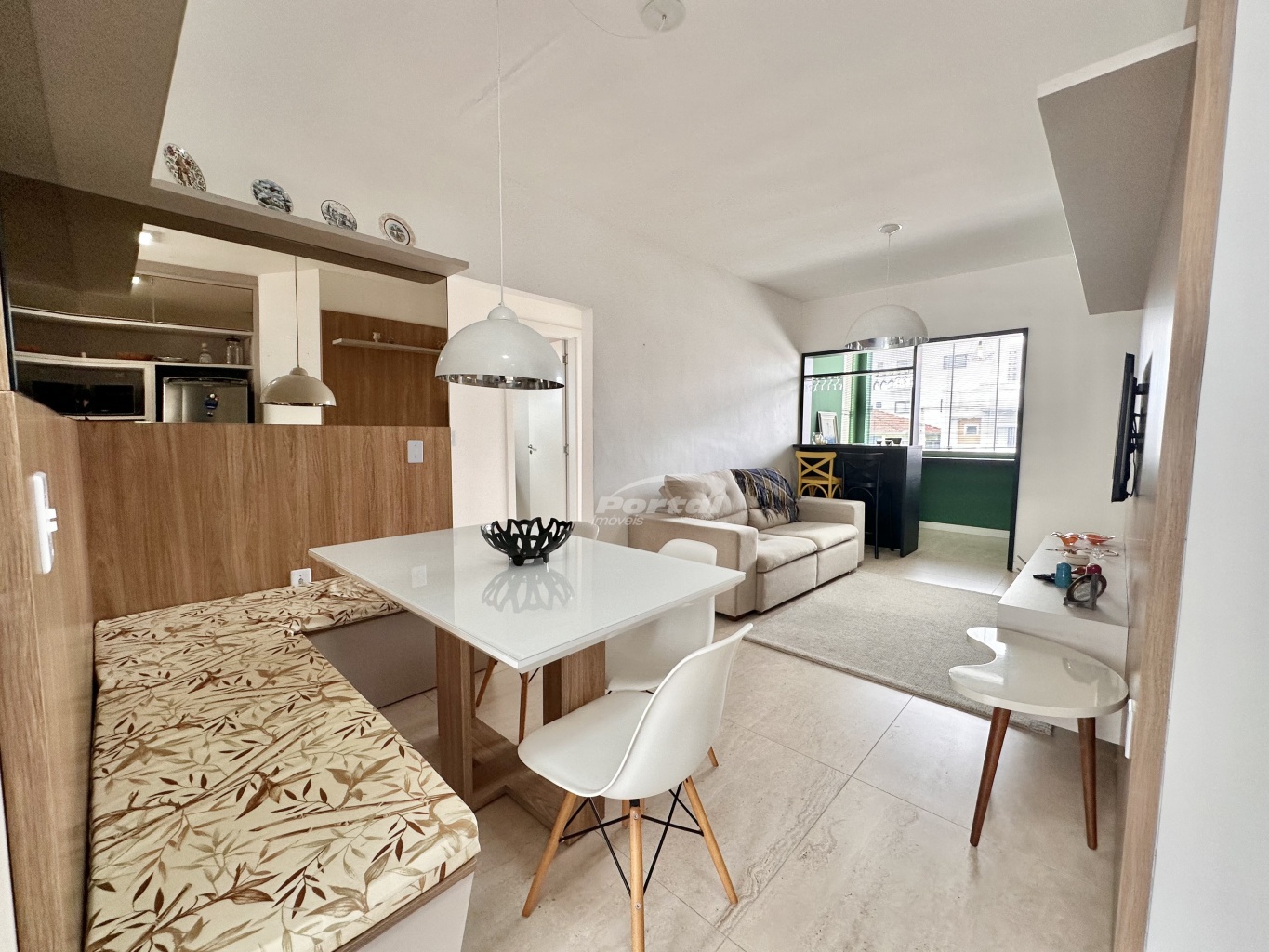 Apartamento mobiliado e aproximadamente 250 m do mar, com excelente padrão de acabamento, moderno, boa incidência solar, ambientes arejados, bem divididos e espaçosos.