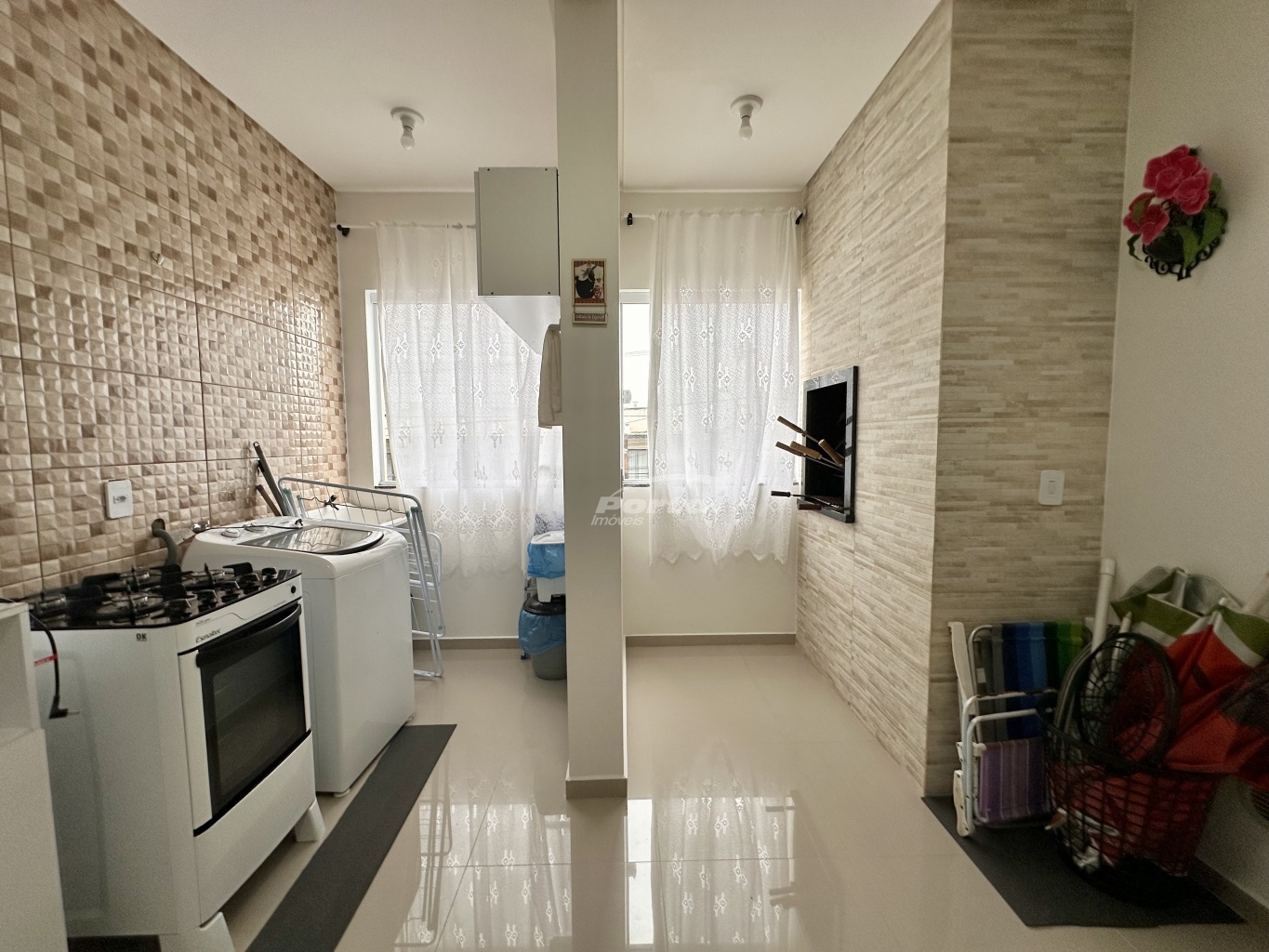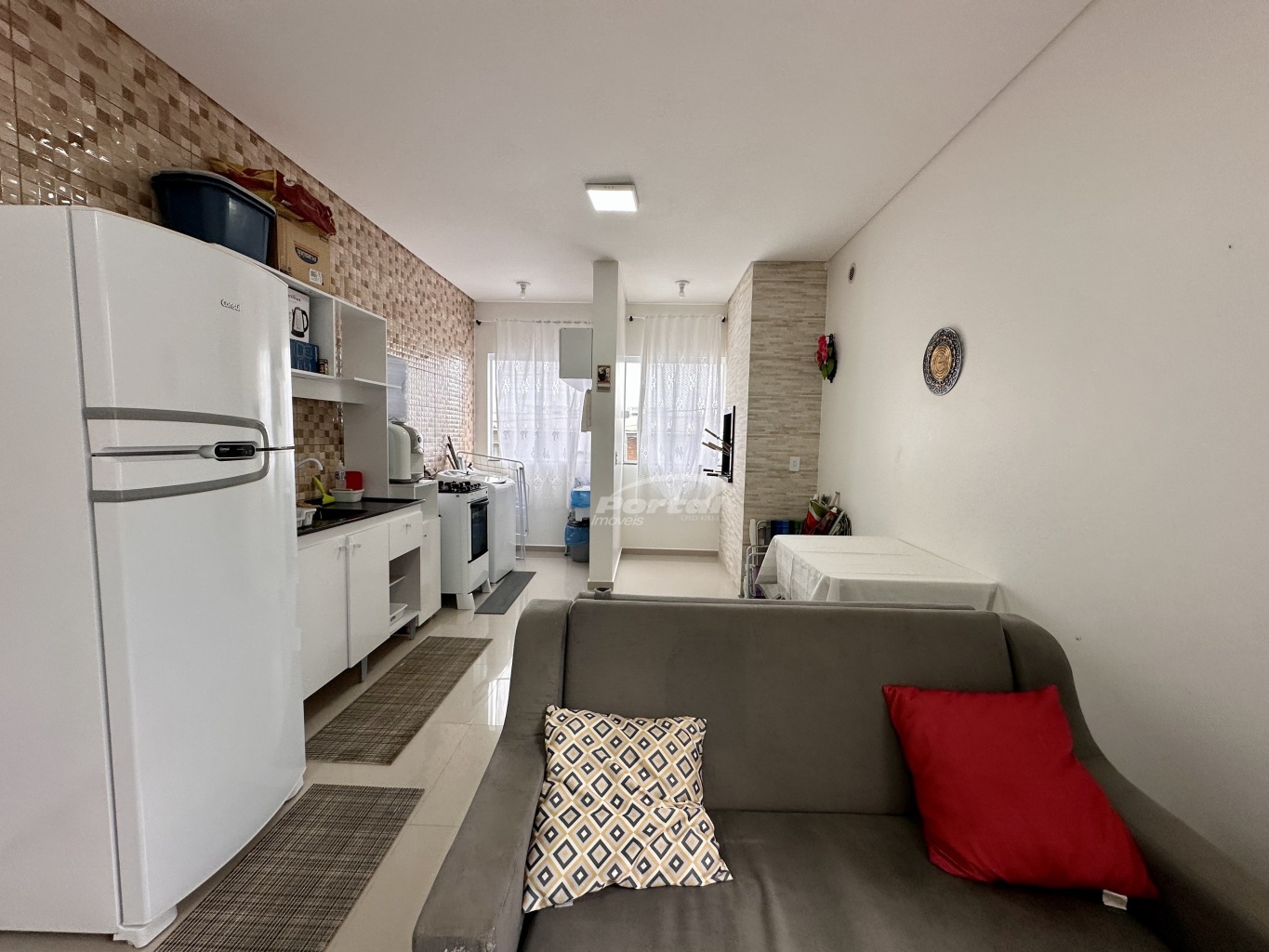 Imóvel com aproximadamente 64,78m², contendo 02 dormitórios, sala de estar, cozinha e sala de jantar conjugadas, lavabo, área de serviço e 01 vaga de garagem.