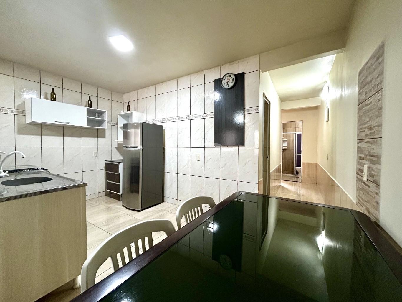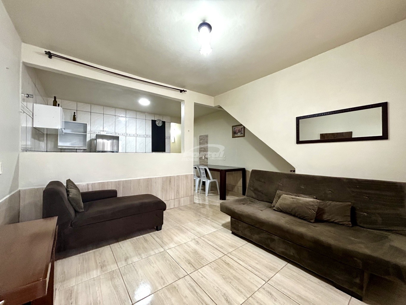 Imóvel com aproximadamente 70m², contendo 01 dormitório, sala de estar, cozinha e sala de jantar conjugadas, banheiro social, área de serviço e vaga de garagem somente para moto.