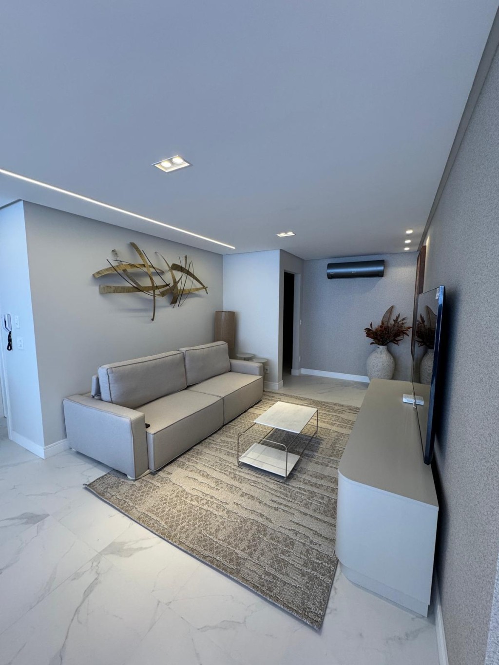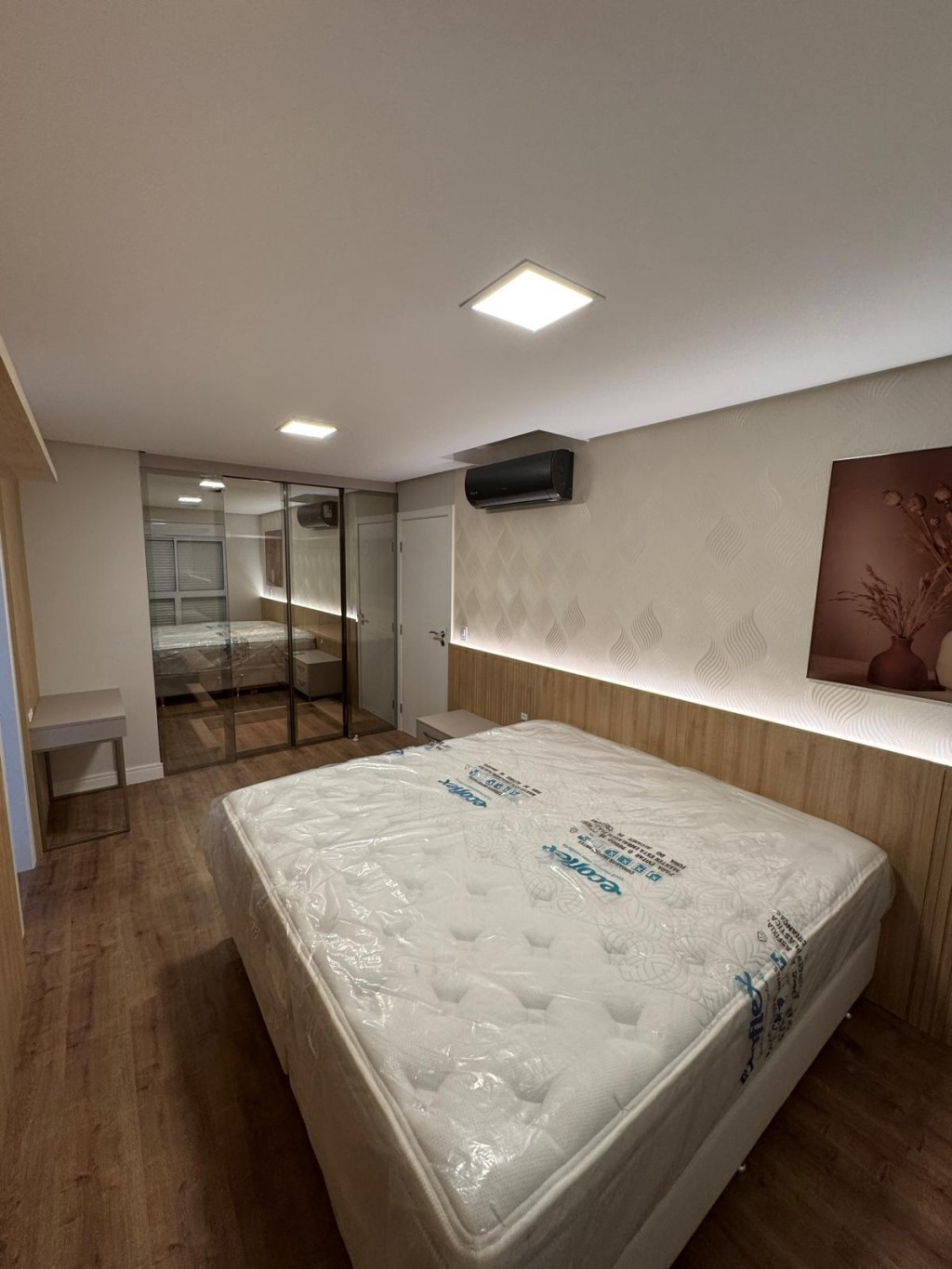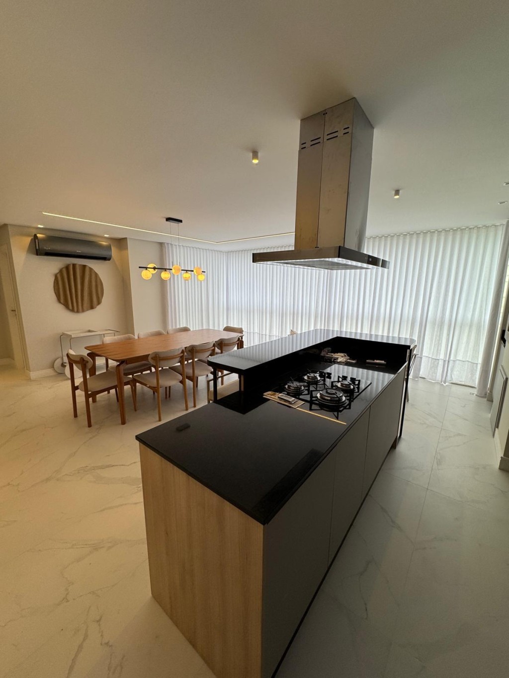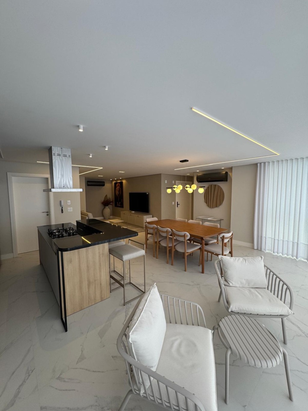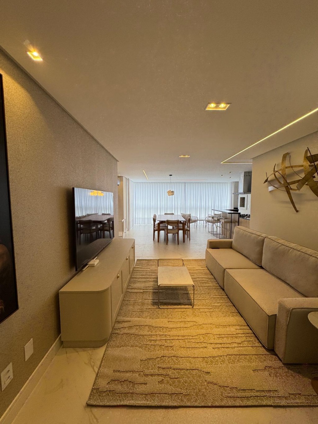 Apartamento de aproximadamente 140m² possuindo 3 suítes, sala de estar e sala de jantar conjugadas, sacada integrada com churrasqueira, área de serviço, lavabo, duas vagas de garagem e box privativo.