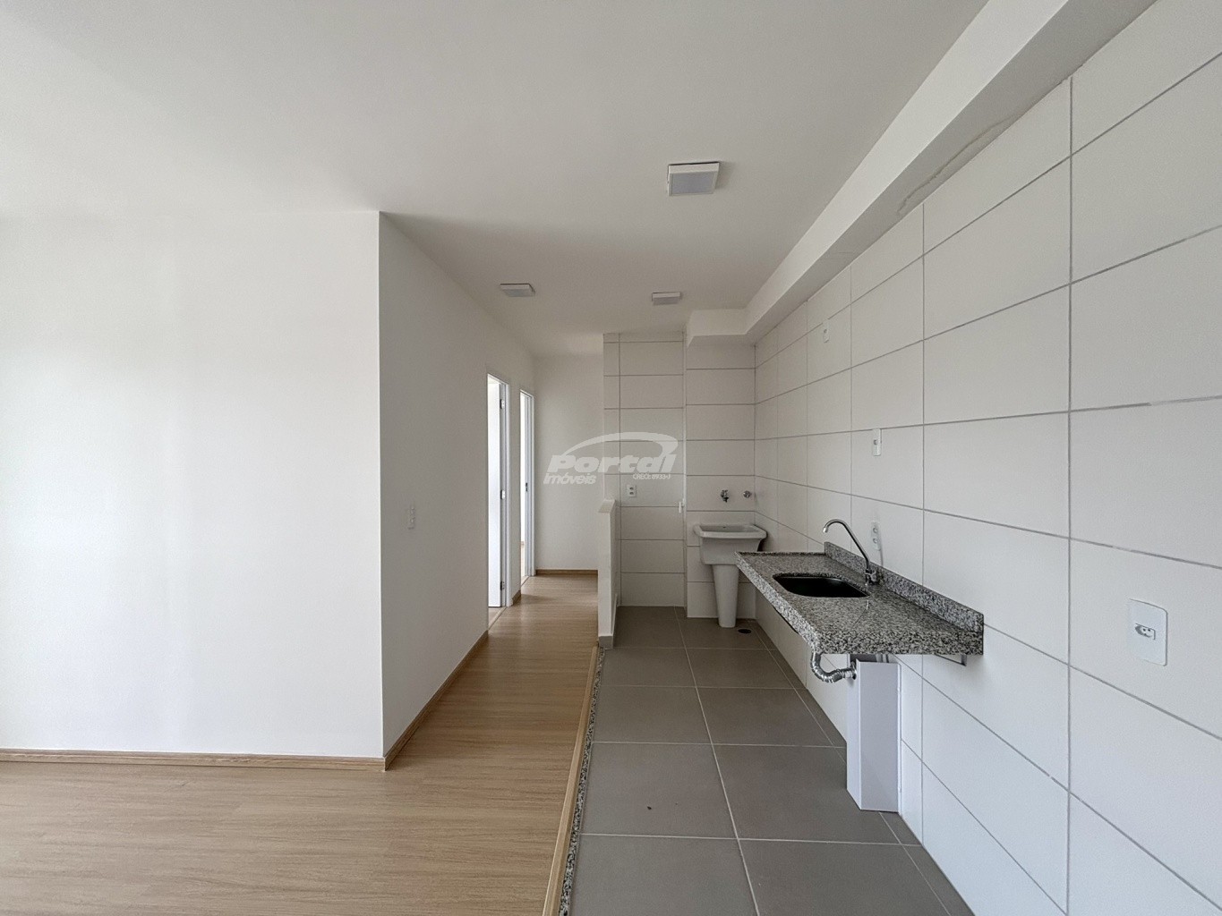 Apartamento com 45m², contendo 02 dormitórios, sala de estar com sacada e churrasqueira, cozinha, sala de jantar, banheiro social, área de serviço e 01 vaga de garagem coberta.