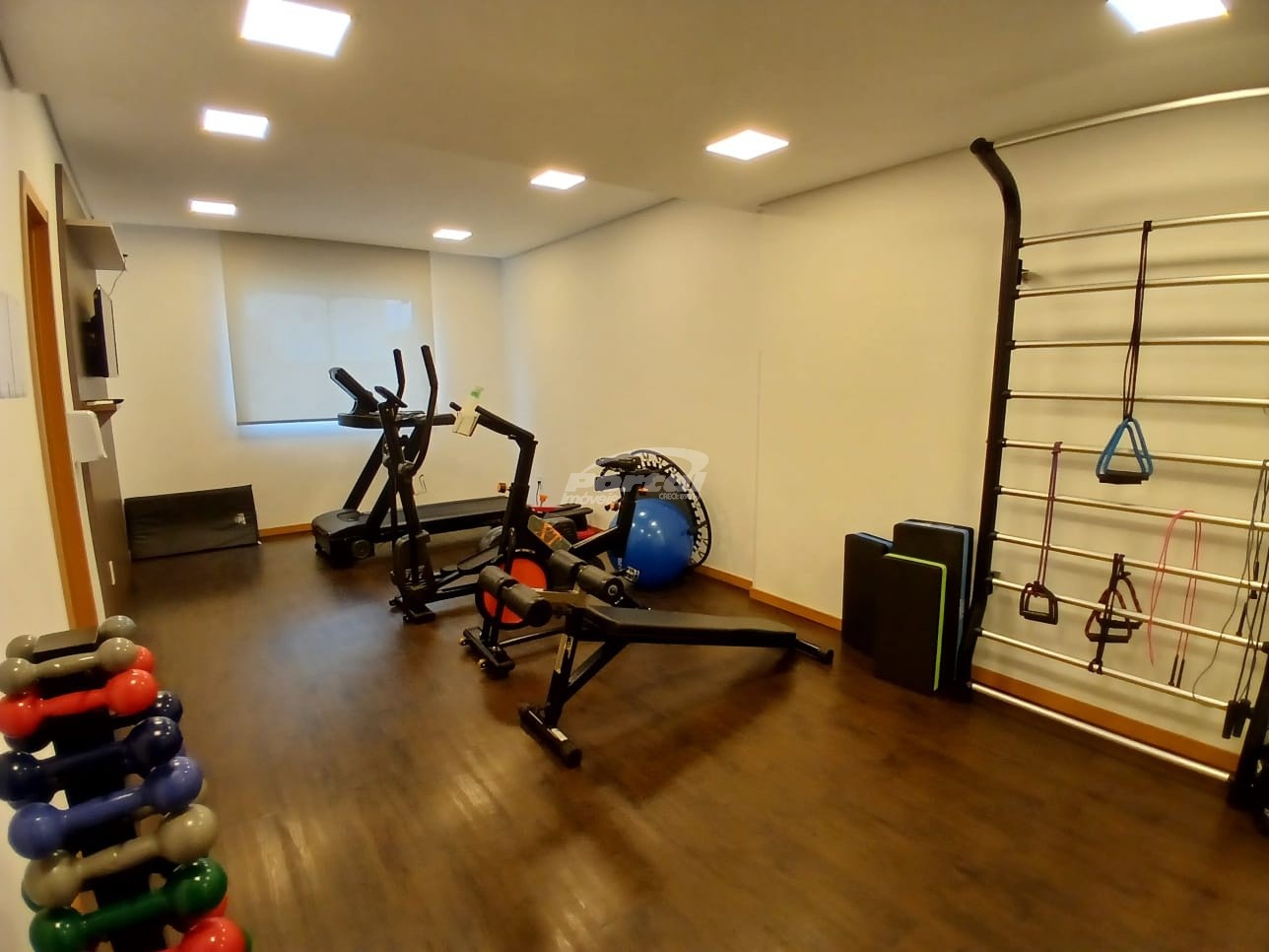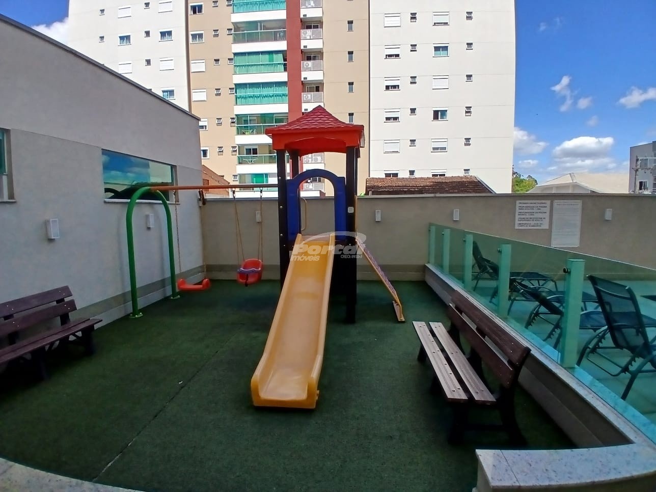 O condomínio possui: piscina, playground, academia, 02 elevadores, salão de festas e monitoramento.