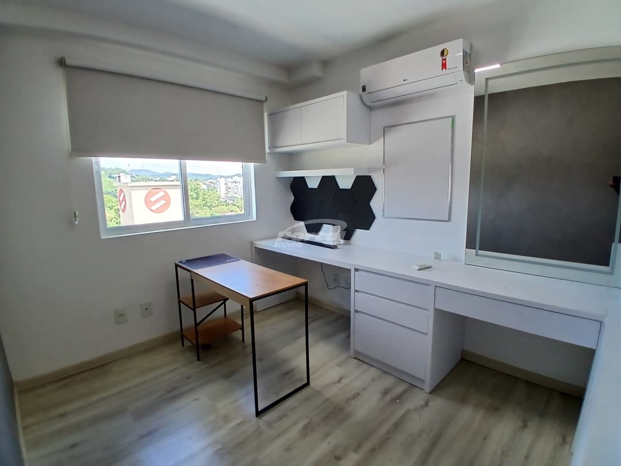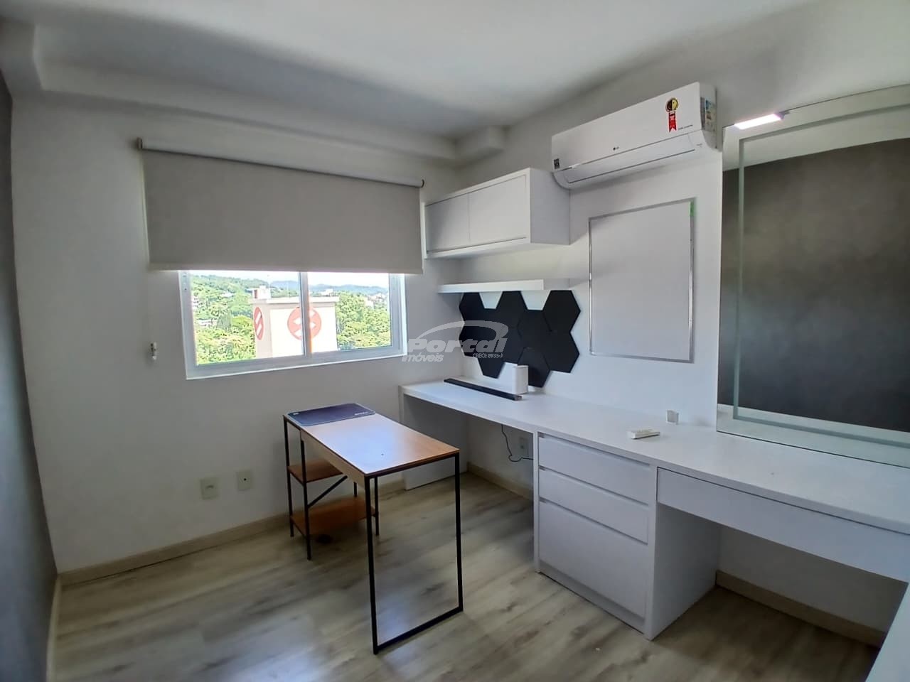 Possui aparelhos de ar condicionado, eletros, assistente virtual Alexia, roupeiros e móveis de qualidade.