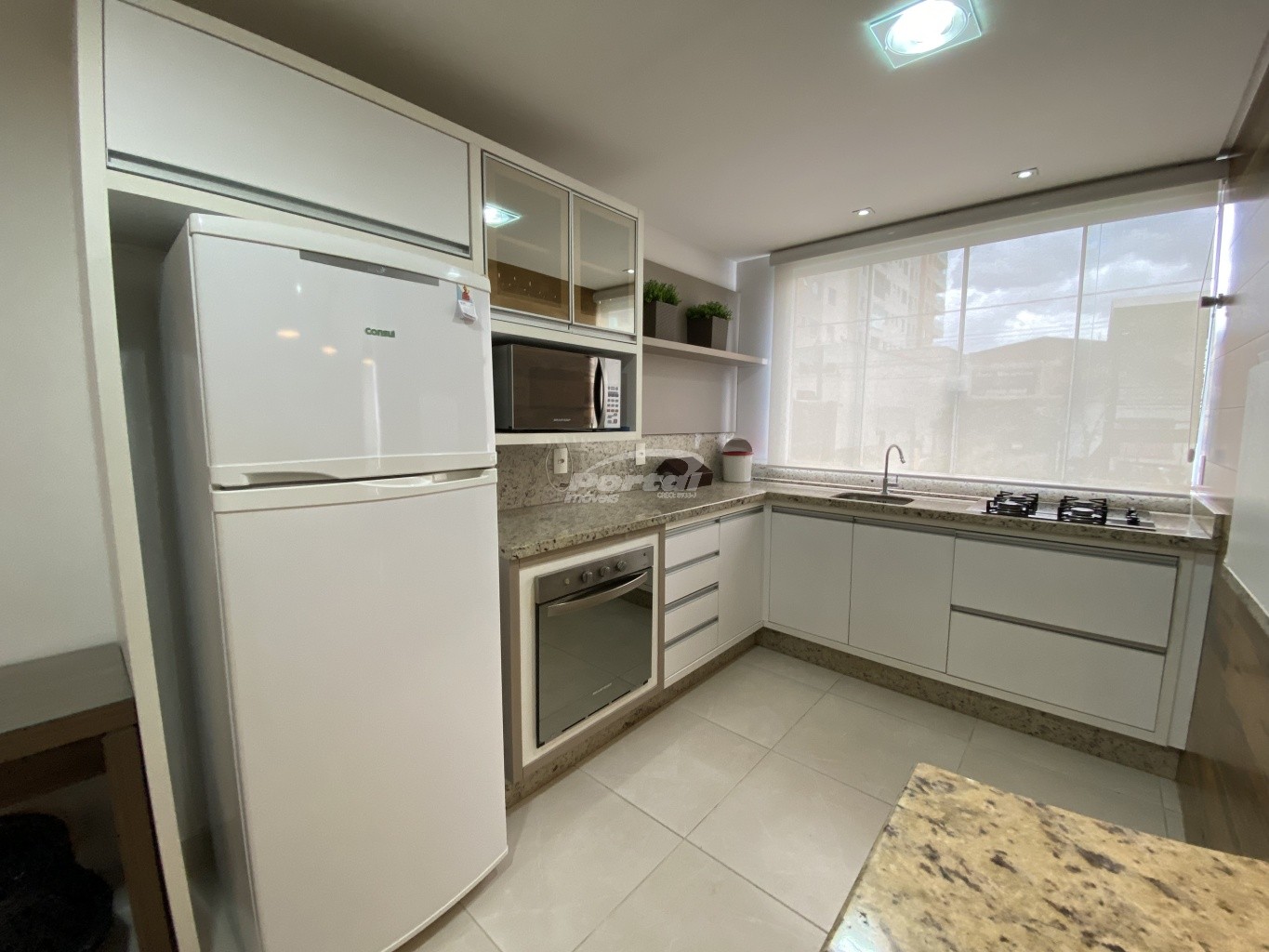 Imóvel com aproximadamente 70m² privativos, contendo 02 dormitórios sendo 01 suíte, cozinha mobiliada, demais dependências e 02 vagas de garagem individuais.