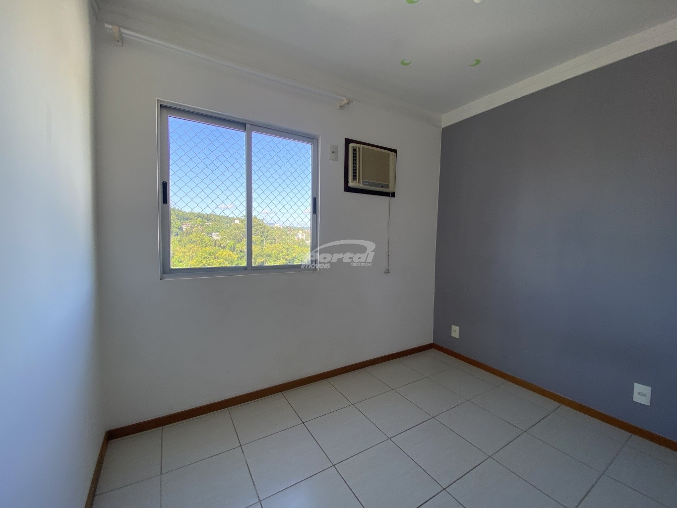 O apartamento fica no último andar, possui armários e ar condicionado nos quartos.