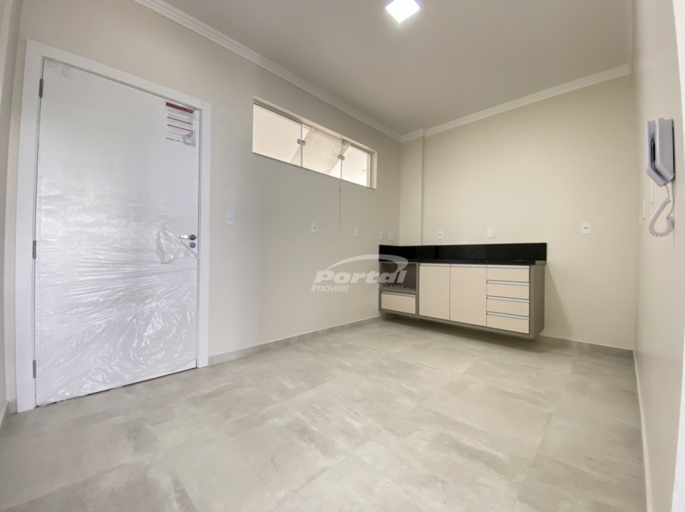 Ambiente amplo, espaçoso, com muita luz natural, portas laqueadas, acabamento em massa corrida, gesso, piso vinílico e porcelanato.