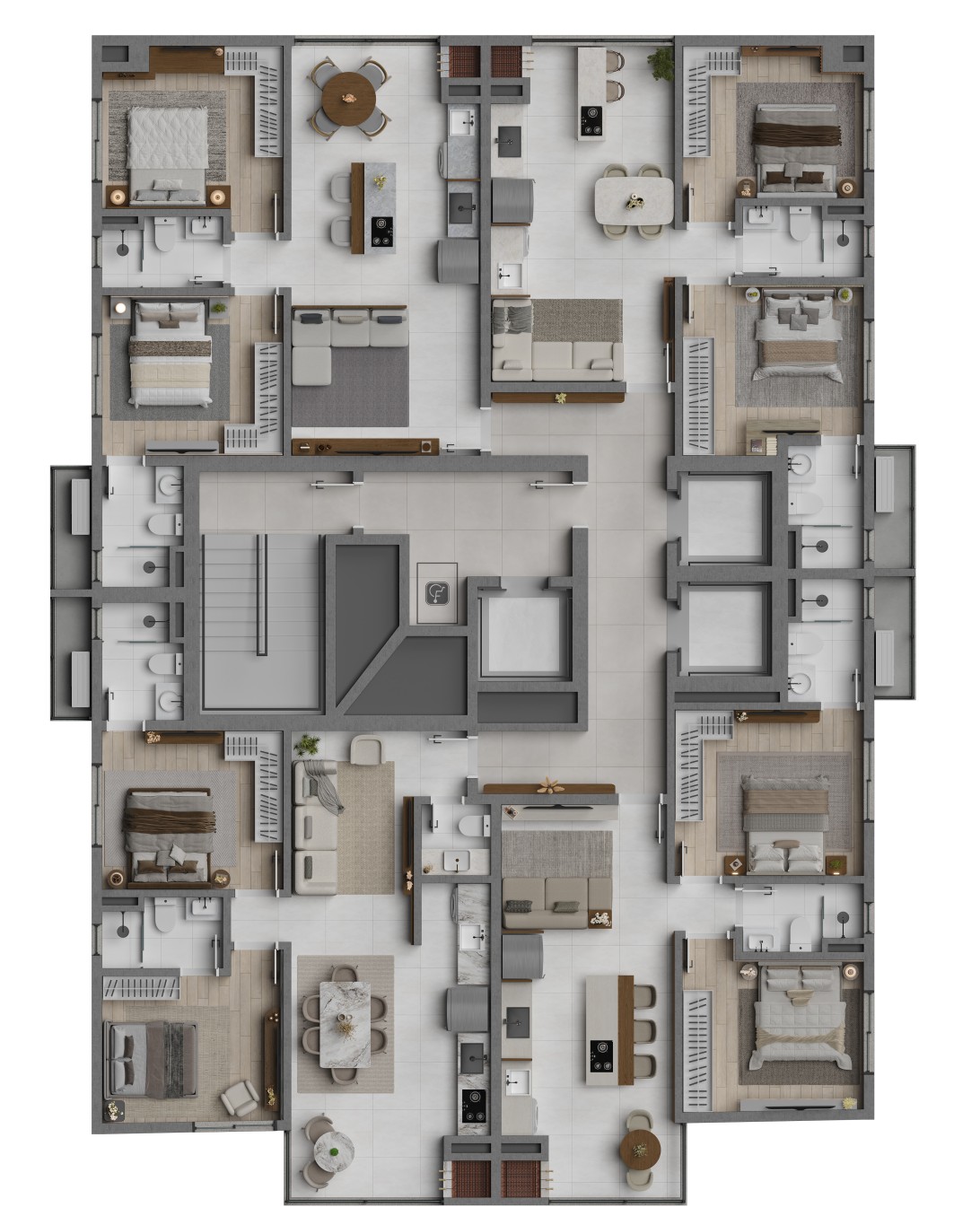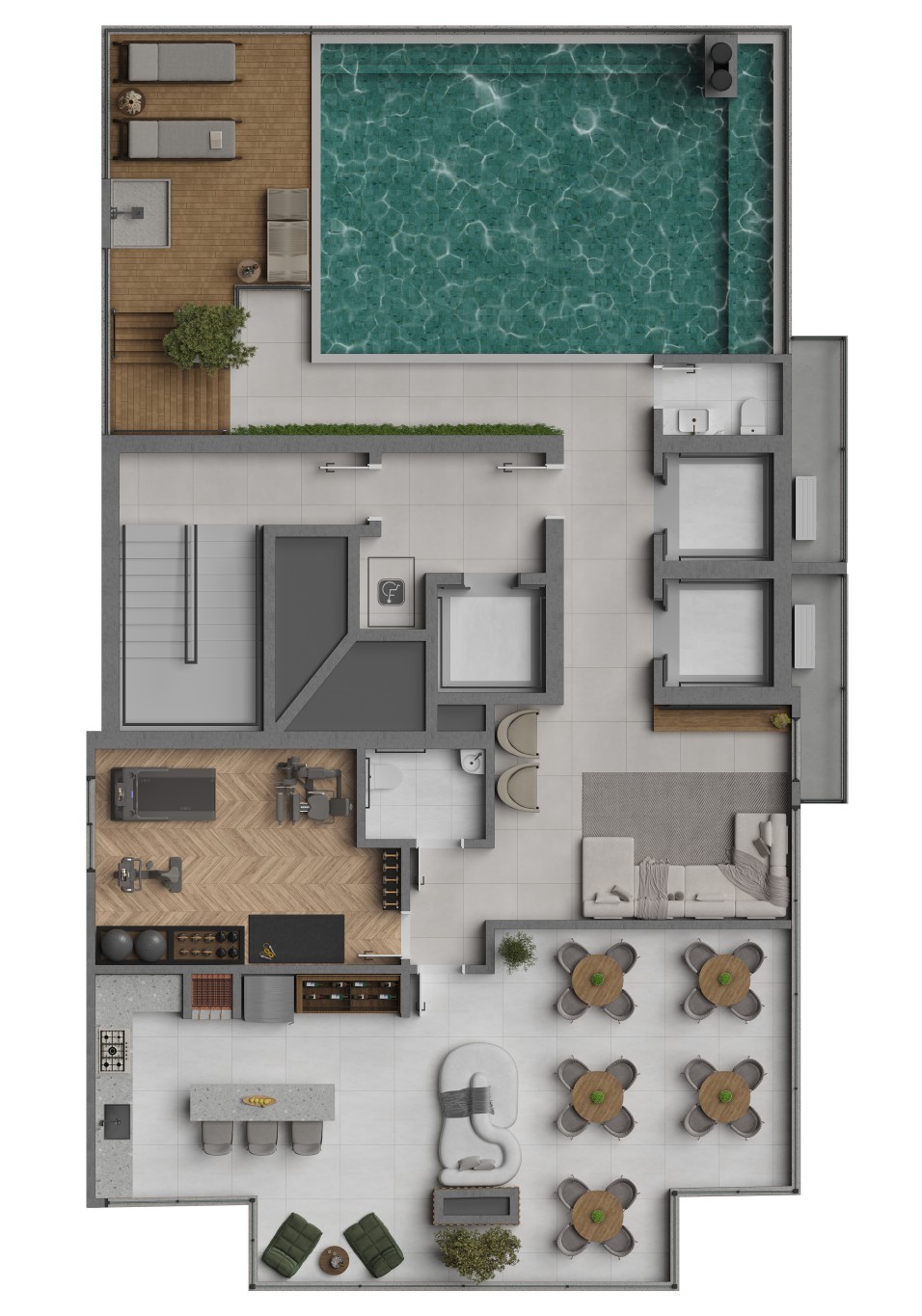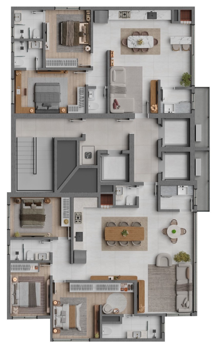 - Duas e três suítes com opções de closet