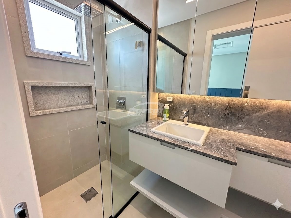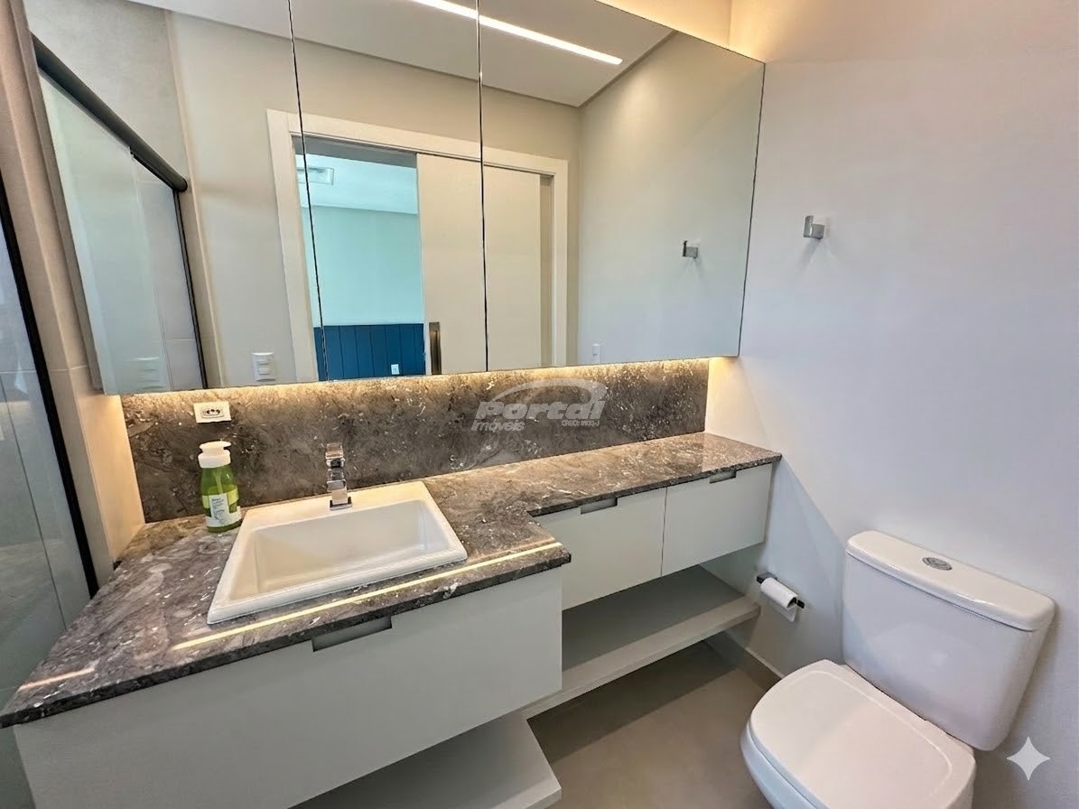 O apartamento está semimobiliado, com móveis planejados assinados por arquiteto, garantindo estética e aproveitamento inteligente dos espaços. Possui ainda aquecimento a gás já instalado, ar-condicionado na sala e em todos os dormitórios, além de banheiros com nichos embutidos, pedras nobres e acabamento refinado.