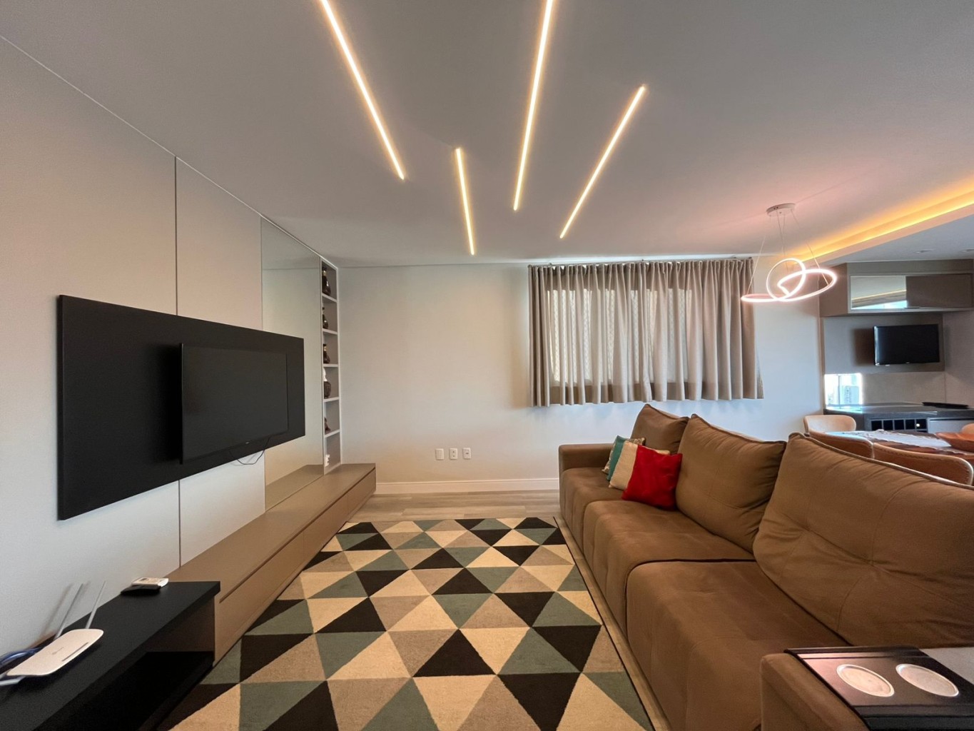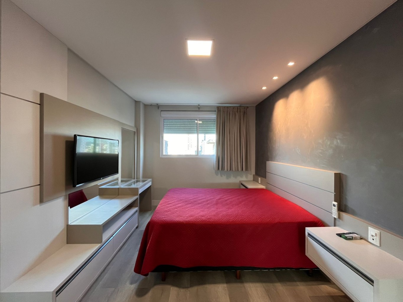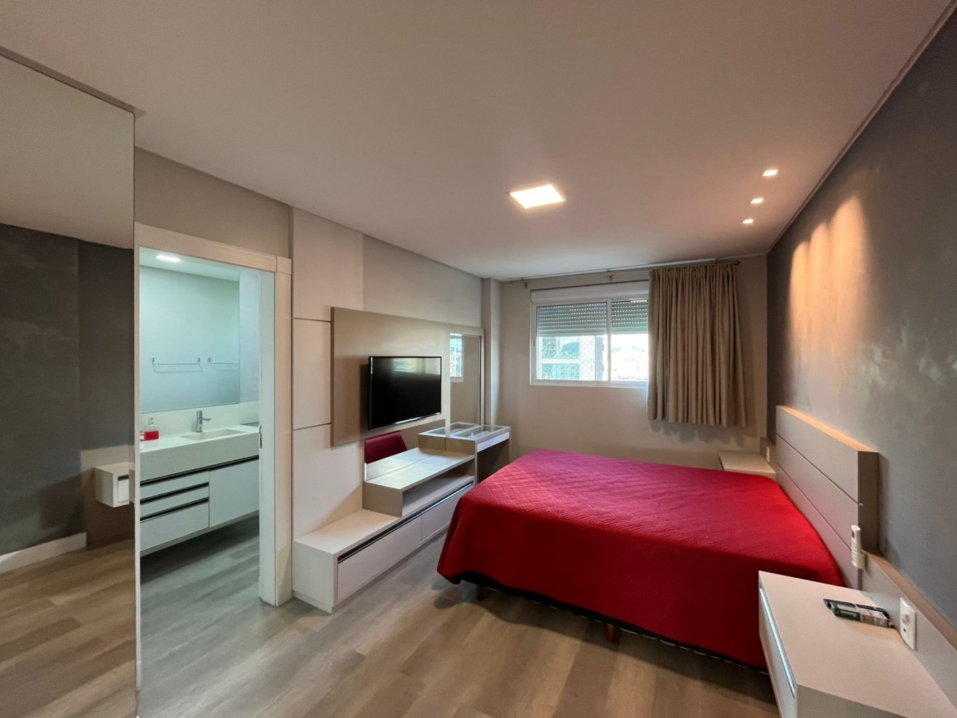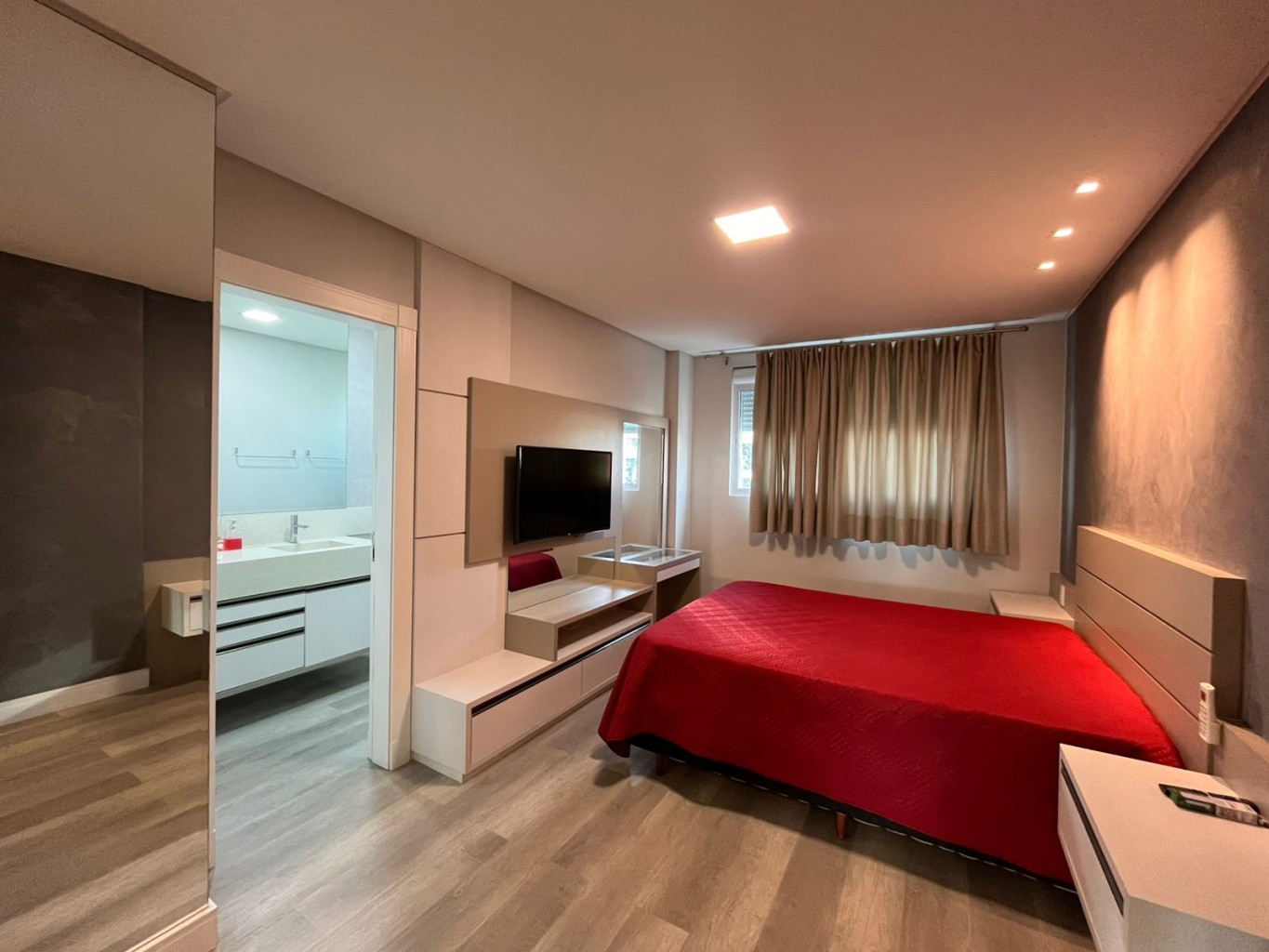 Na Meia Praia, este apartamento se revela já na entrada: a integração das áreas sociais, os vãos bem dimensionados e a luz natural percorrendo os ambientes evidenciam um projeto pensado com rigor.