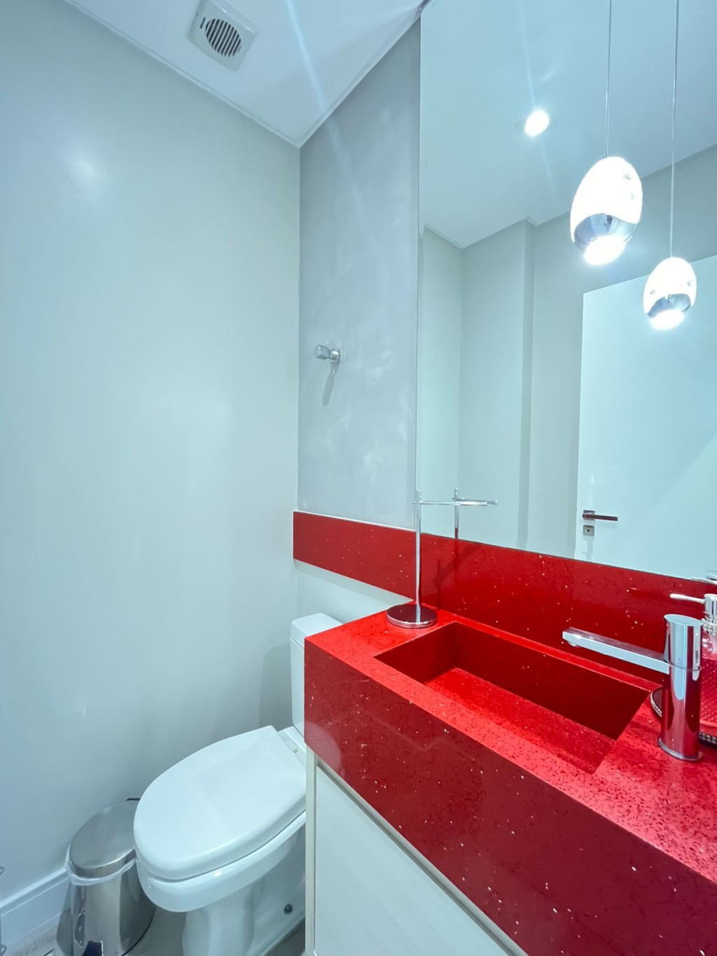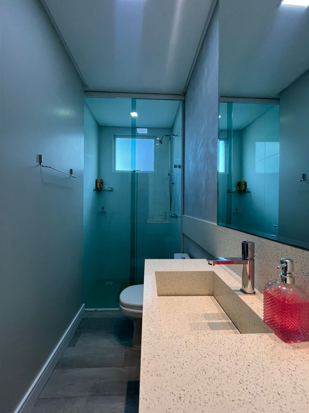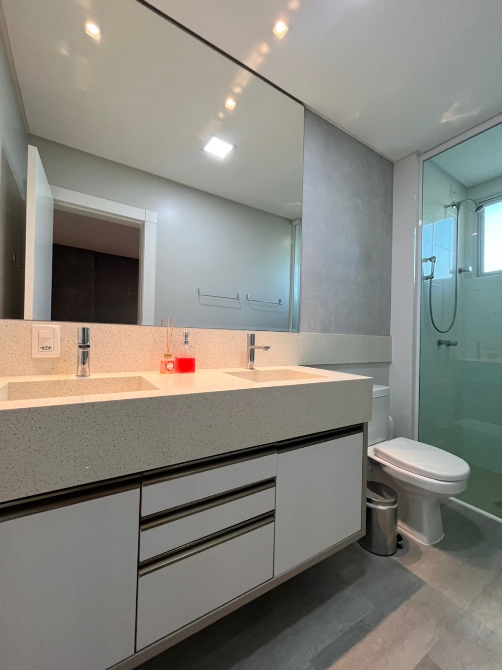 O mobiliário, cuidadosamente selecionado, dialoga com os acabamentos e reforça a leitura contemporânea dos espaços.