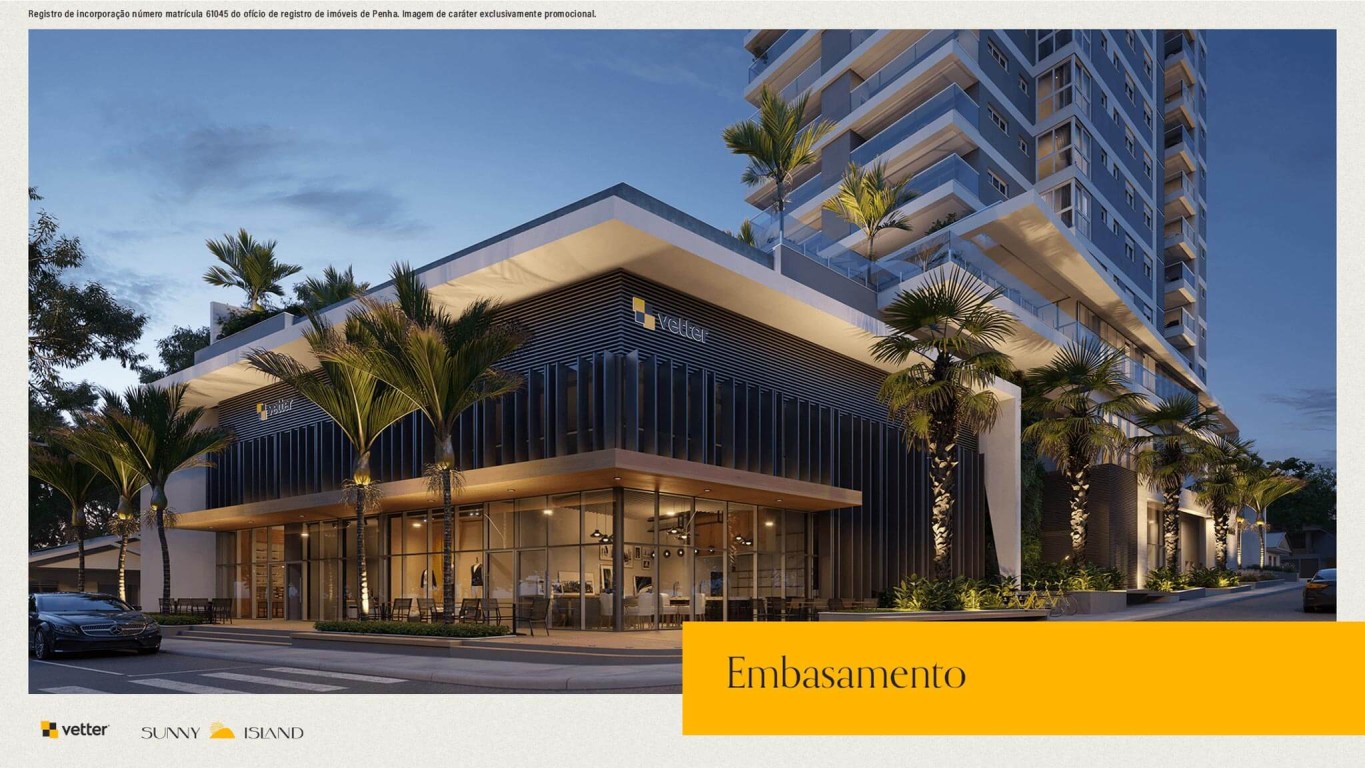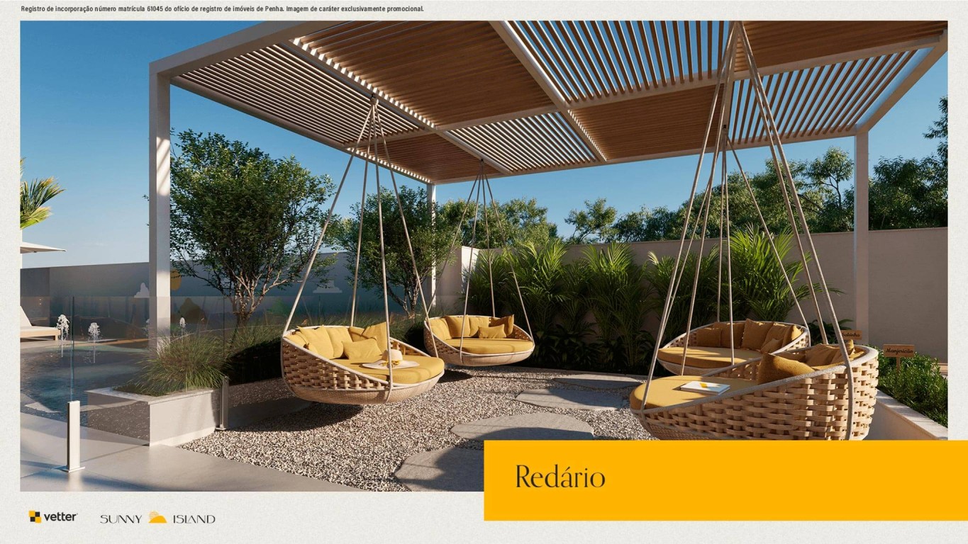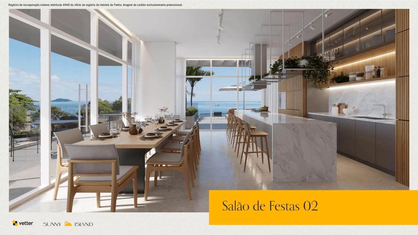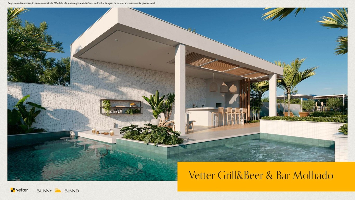 Área de lazer com mais de 1.400m², piscina com borda infinita e vista para o mar, 2 salões de festas, deck molhado, deck externo, fireplace, bar molhado, vetter grill e beer, splash kids, redário, horta comunitária, playground, pet place, quadra poliesportiva, sports grill, fireplace sunset, deck sunset, brinquedoteca, reebok fitness center, vetter summer drinks, game room, business and coffee, vetter bike community, game center, cinema.