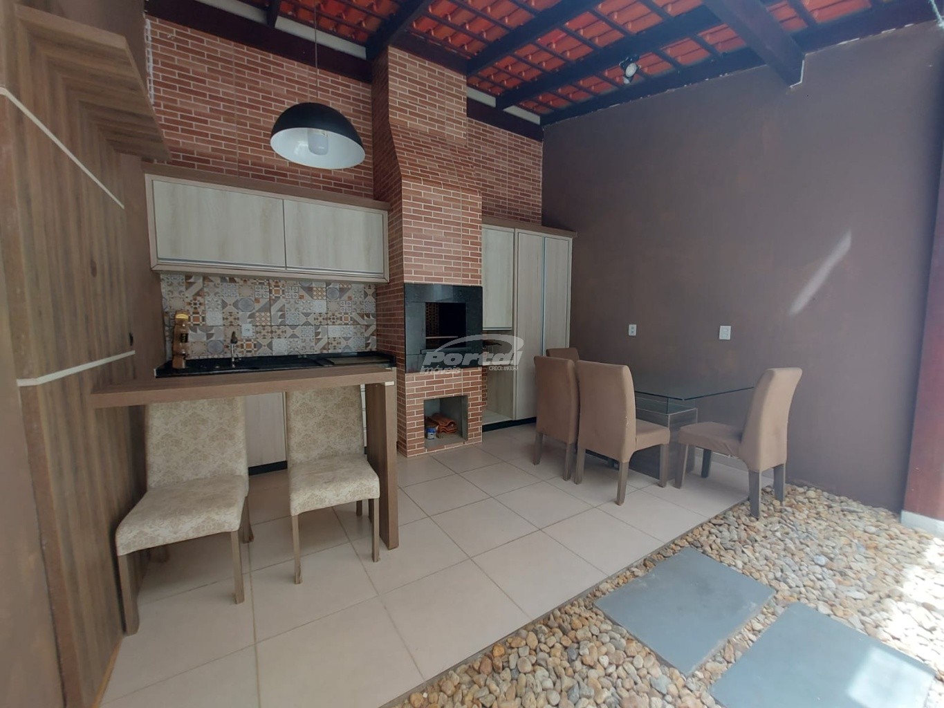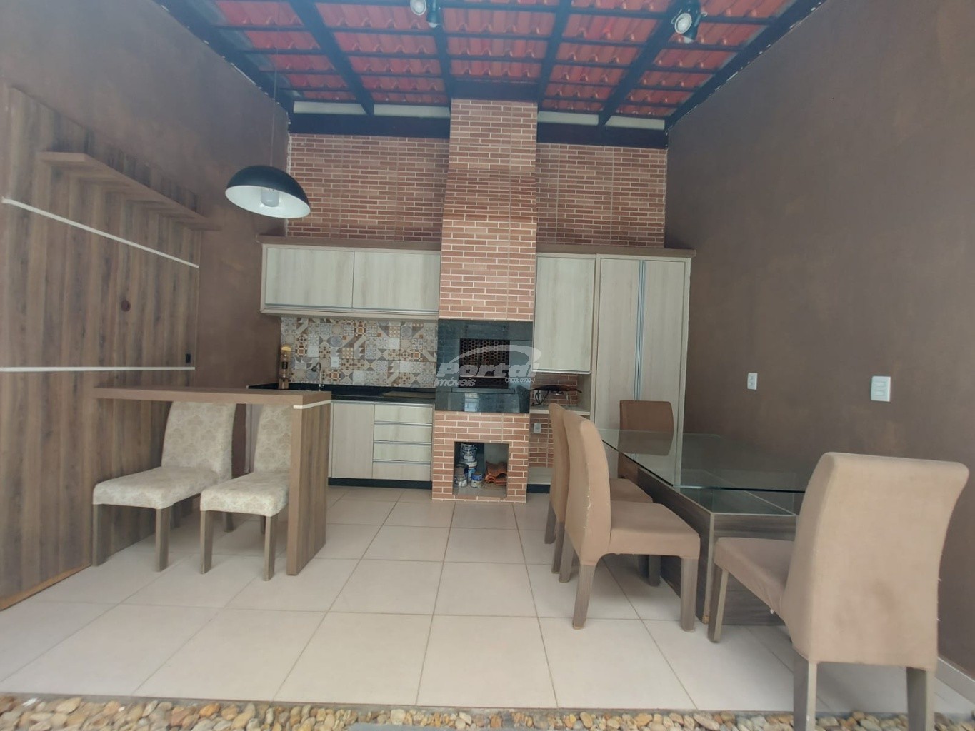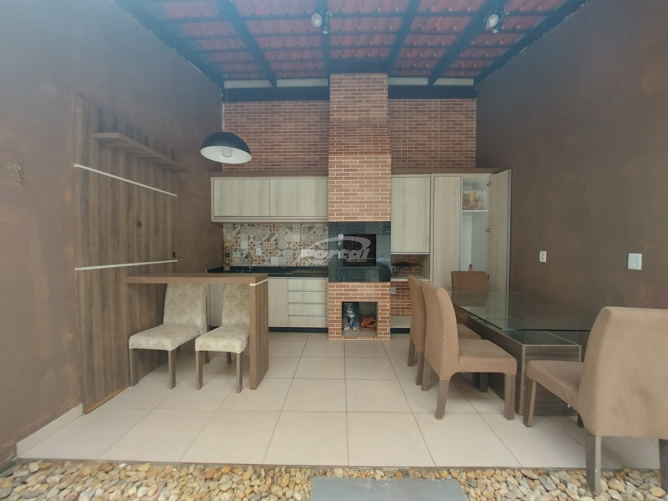 Casa semi mobiliada, com excelente padrão de acabamento, moderna, boa incidência solar, ambientes arejados, bem divididos e espaçosos, totalmente murada e com portão.