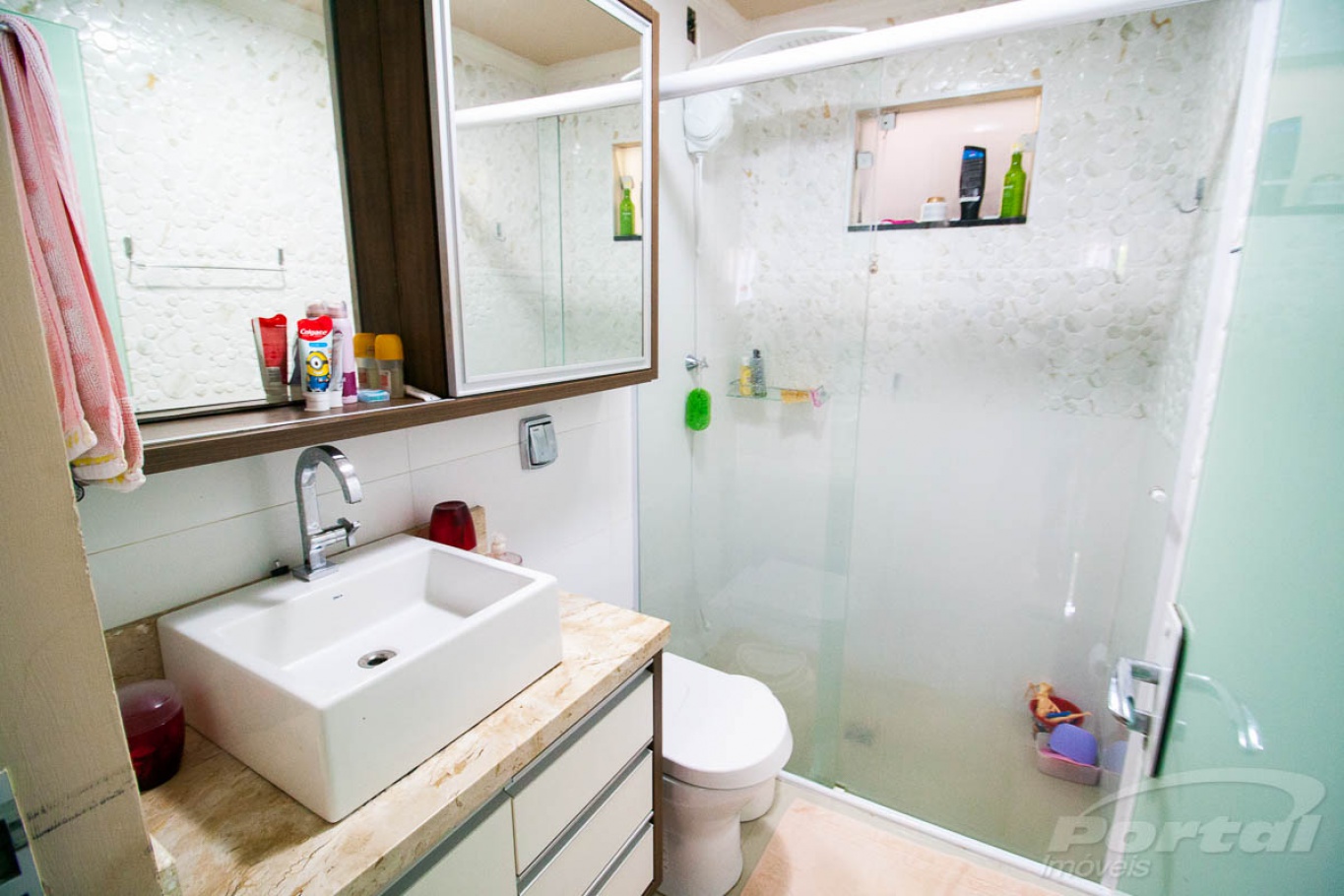 Imóvel com aproximadamente 120m², contendo 02 dormitórios, sala de estar, cozinha, área de serviço, banheiro, área de festa e 01 vaga de garagem.