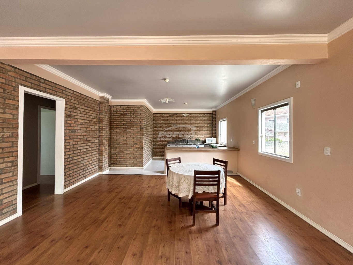 Imóvel com 02 dormitórios sendo 01 suíte, sala de estar, cozinha e sala de jantar conjugadas, banheiro social, área de serviço, 01 vaga de garagem coberta e amplo quintal na frente.