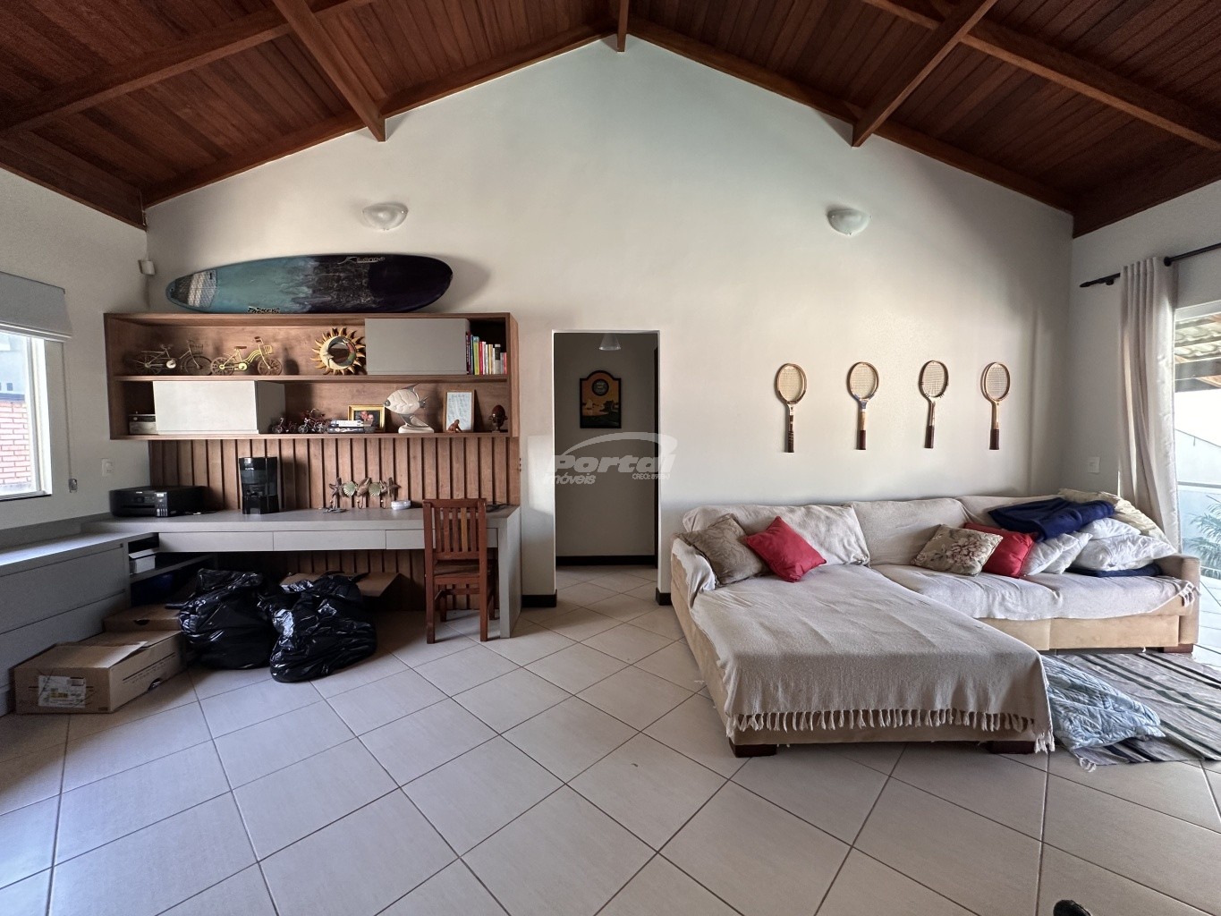 Conta com: 1 suíte + 2 dormitórios com sala e cozinha conceito aberto com churrasqueira, sala superior com escritório amplo, dispensa e área de serviço, cerca elétrica, alarme com monitoramento e portão eletrônico.