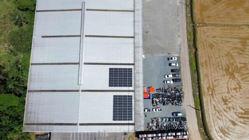 O imóvel conta ainda com lanternins no telhado para ventilação e troca térmica, telhas translúcidas que favorecem a iluminação natural e abastecimento de água por poço semi artesiano.