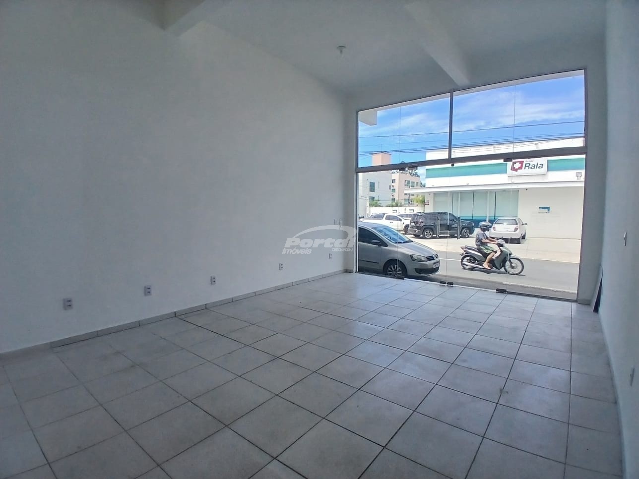 Sala com ótimo acabamento, pé direito alto, ampla vitrine e boa incidência solar.