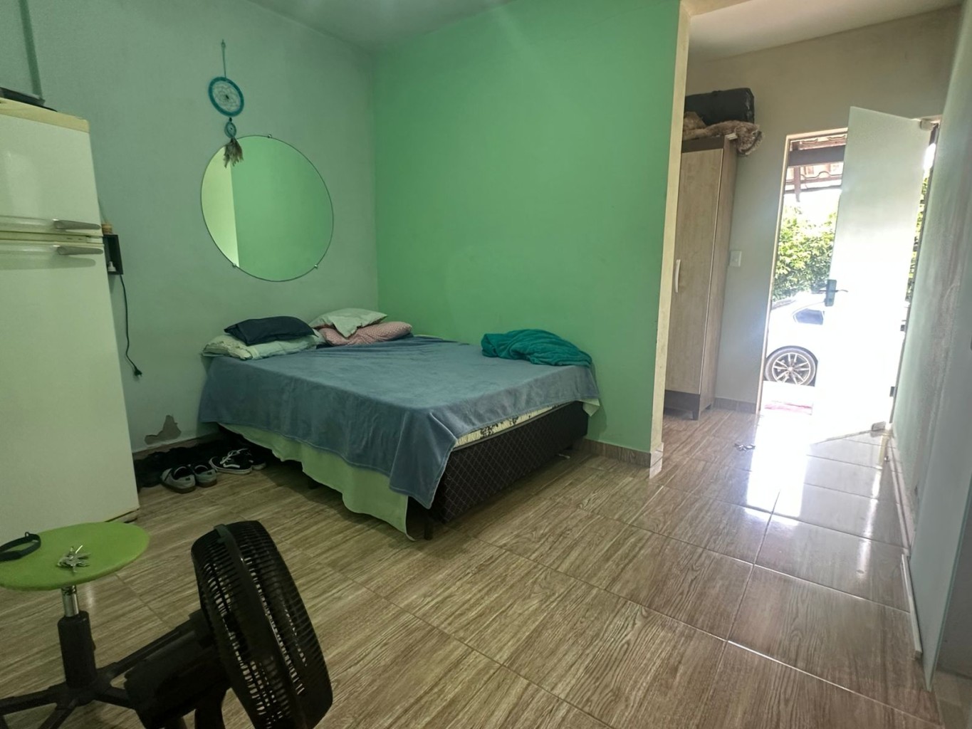 A casa, localizada na entrada do terreno, conta com: