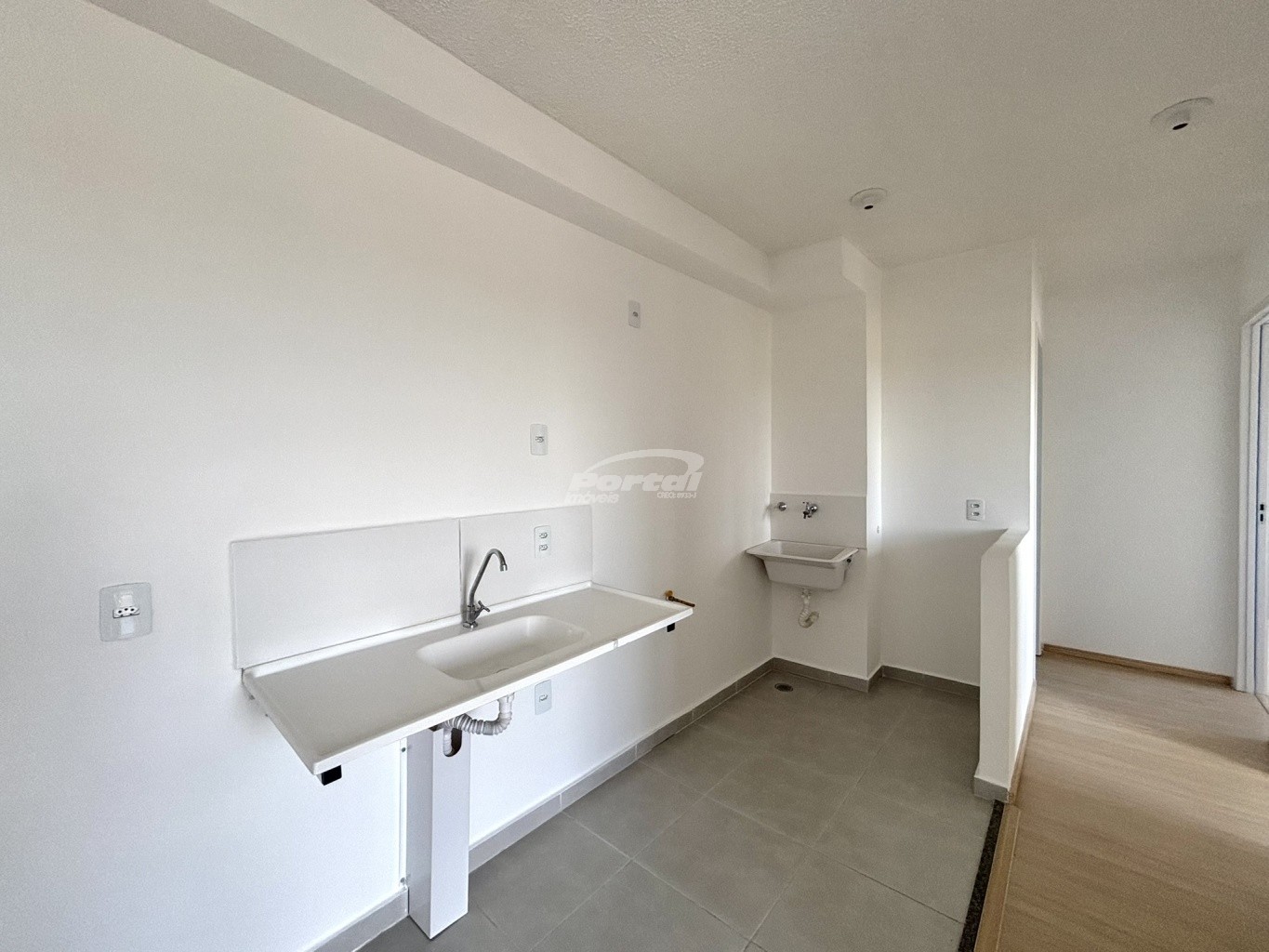 Apartamento com 45m², contendo 02 dormitórios, sala de estar com sacada com churrasqueira, cozinha, sala de jantar, banheiro social, área de serviço e 01 vaga de garagem sem cobertura.