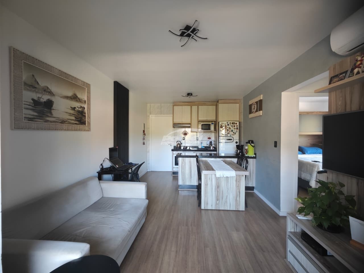 Imóvel com aproximadamente 55m², contendo 02 dormitórios, sala de estar + jantar conjugadas,