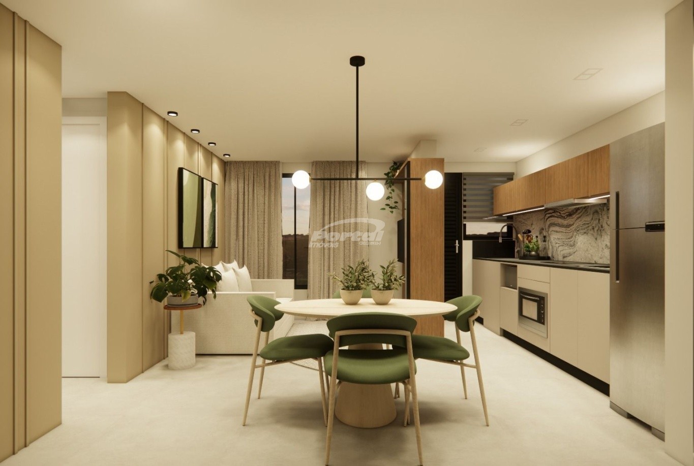 - Cozinha e sala integradas;