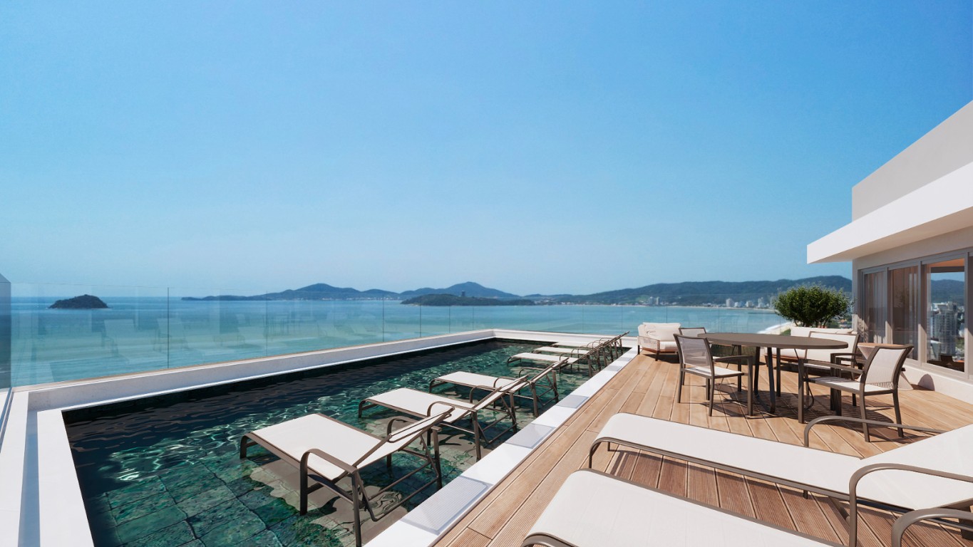 Rooftop com piscina, deck molhado e spa, bar