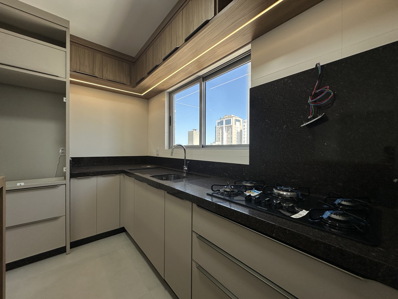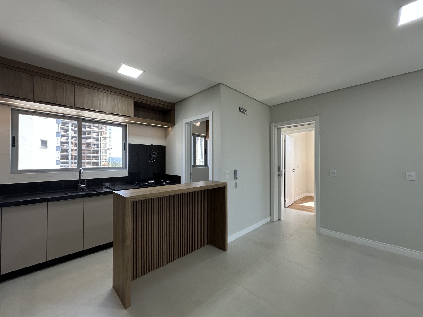 - Living integrado com cozinha mobiliada;
