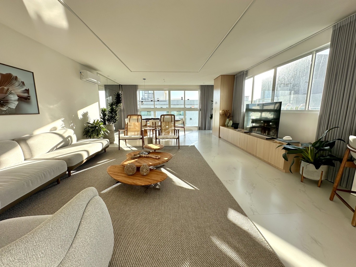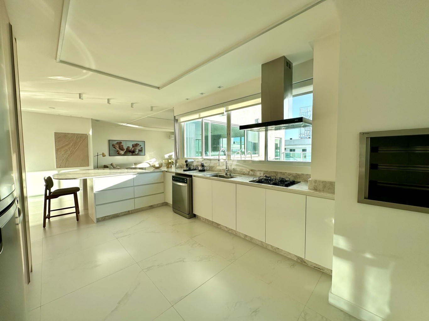 05 suítes, cozinha americana, área de serviço, lavabo, sala de estar, banheiro social, sacada integrada, churrasqueira, piscina privativa e além disso conta com 4 vagas de garagem.