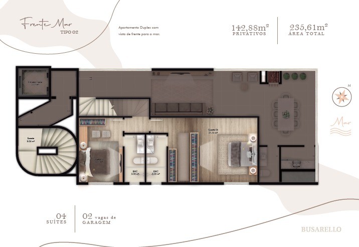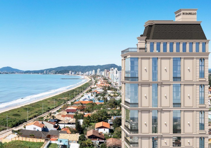 Área total de 235,61m² e área privativa de 142,88m², a cerca de 100 metros do mar.
