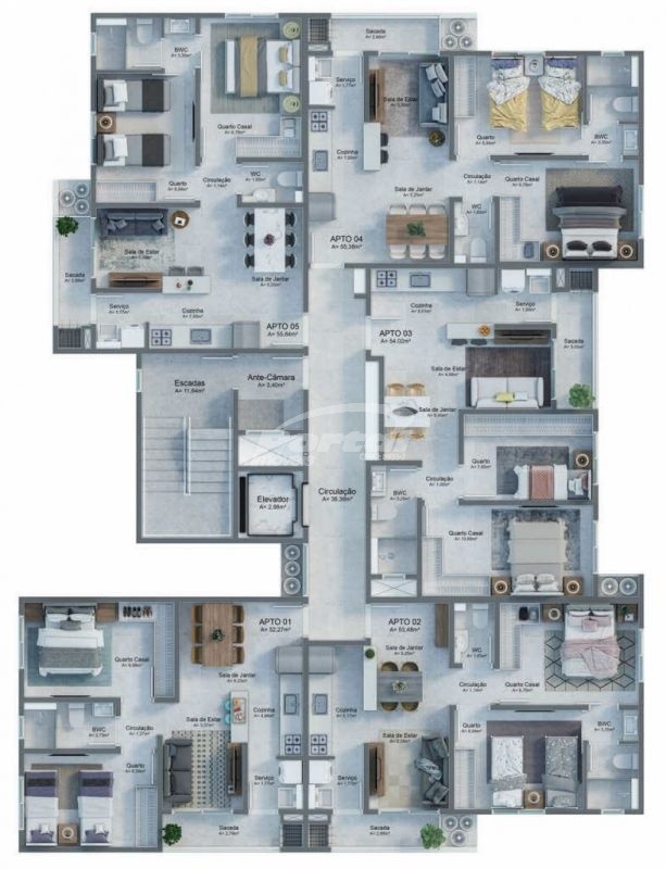 Área privativa de 54 m² distribuídos em: