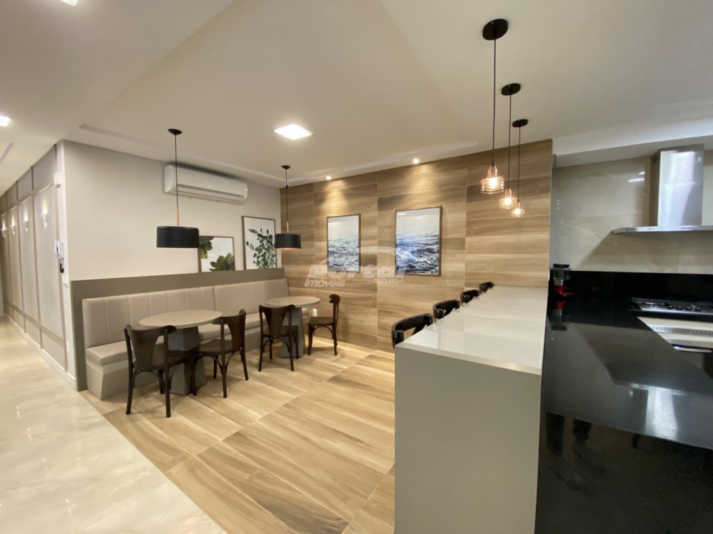 - Salão de festas decorado e mobiliado, com churrasqueira;