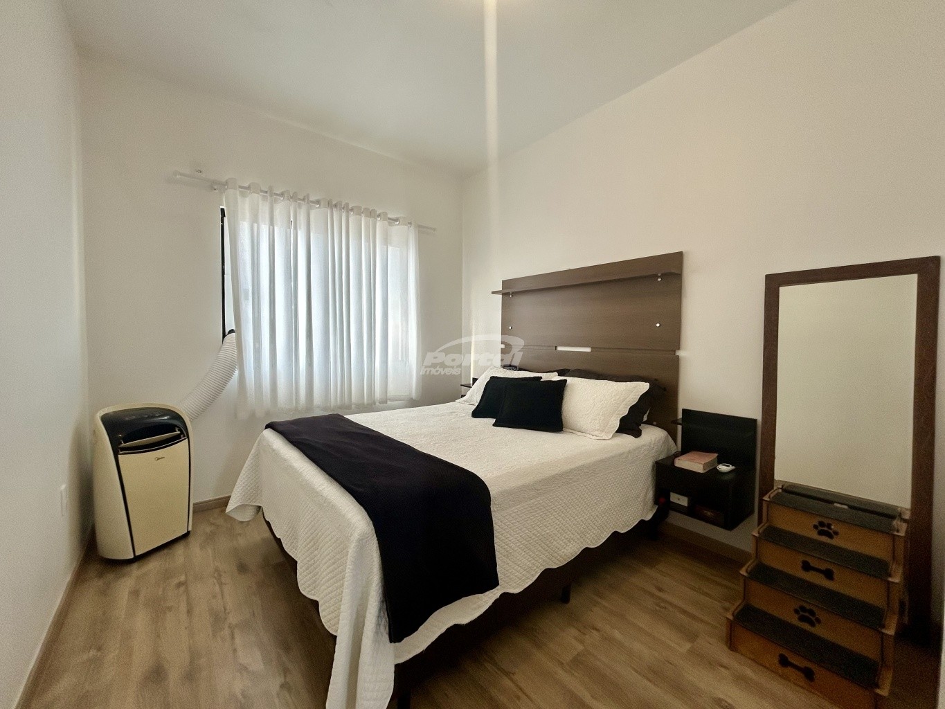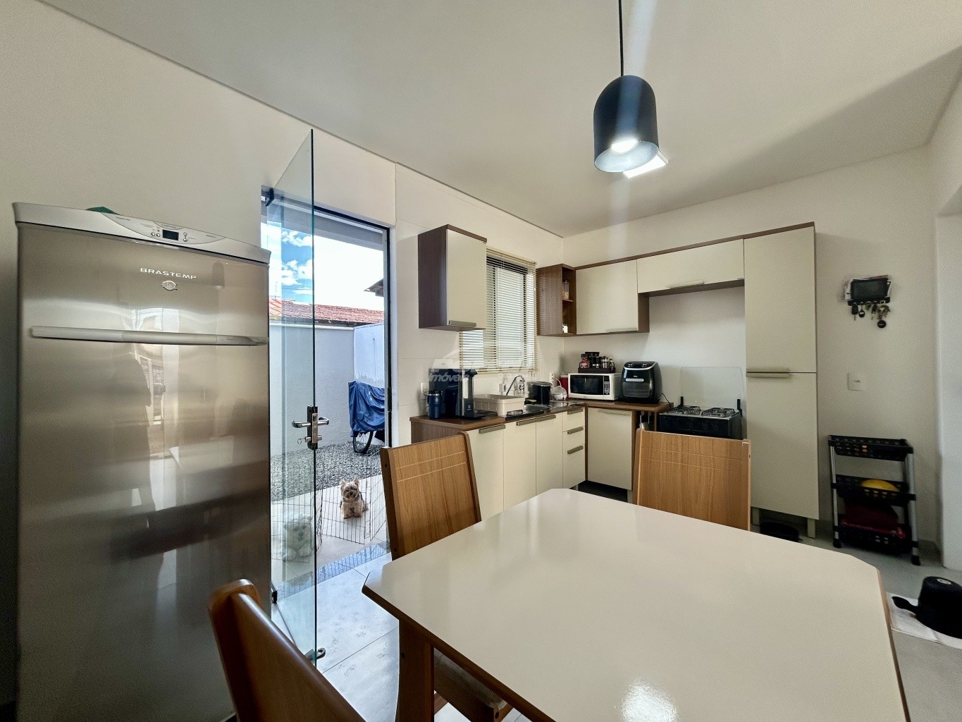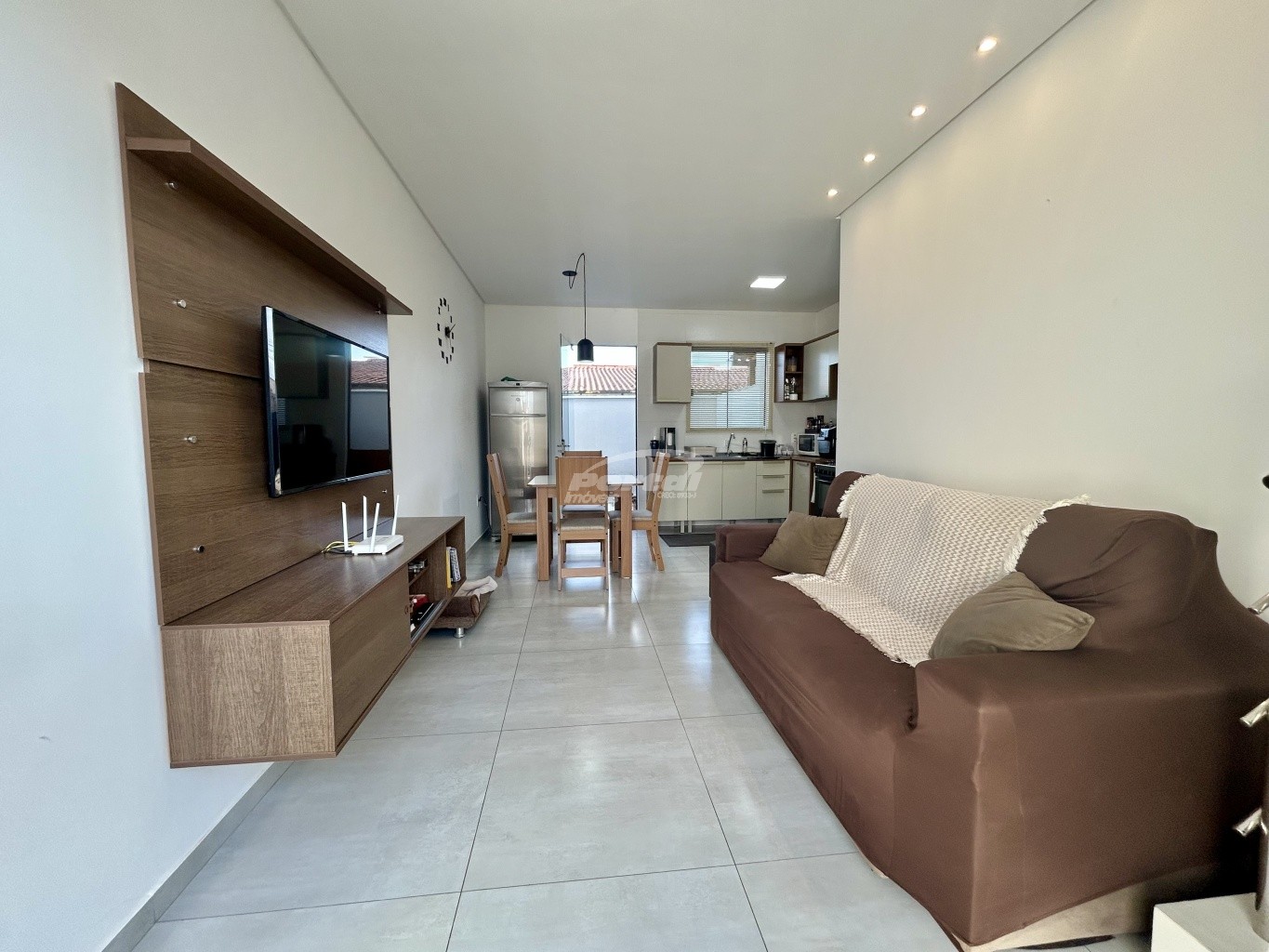 Imóvel com aproximadamente 74m², contendo 02 dormitórios sendo 01 suíte, sala de estar, cozinha e sala de jantar conjugadas, lavabo, área de serviço, quintal nos fundos com churrasqueira e 02 vagas de garagem.