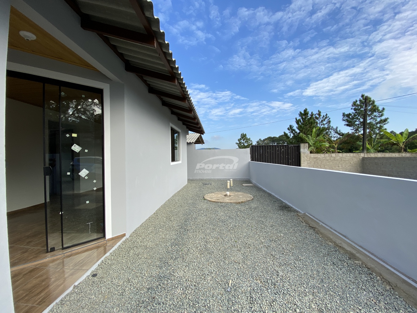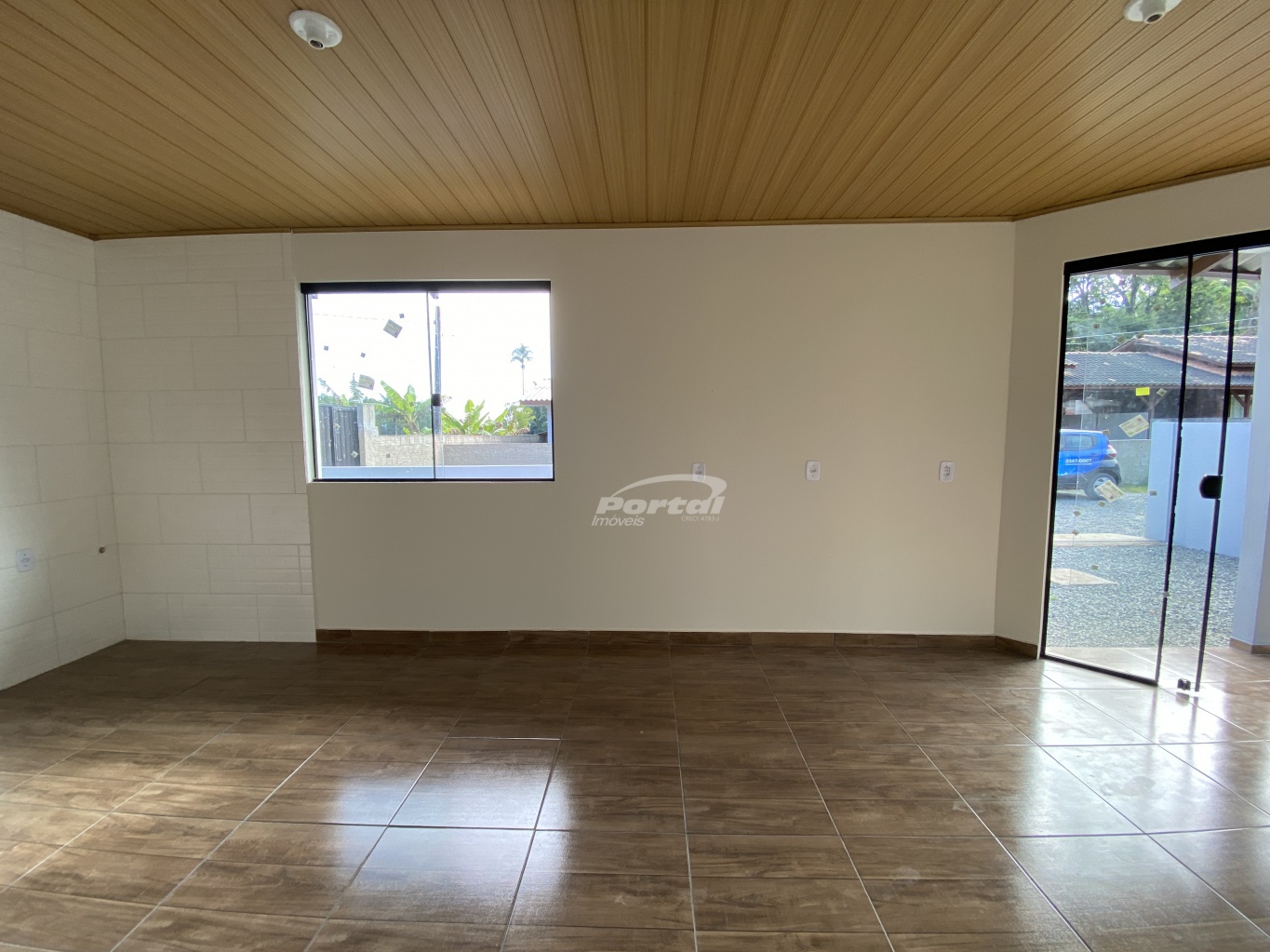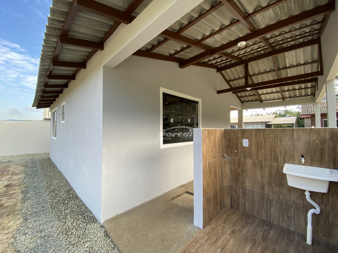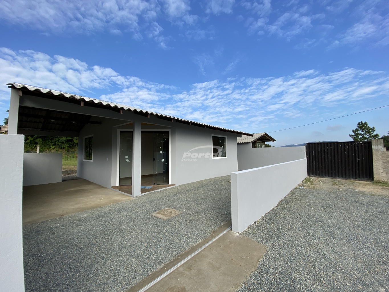 Imóvel com 2 quartos, sala e cozinha conjugada, banheiro social, área de serviço, garagem e amplo terreno;