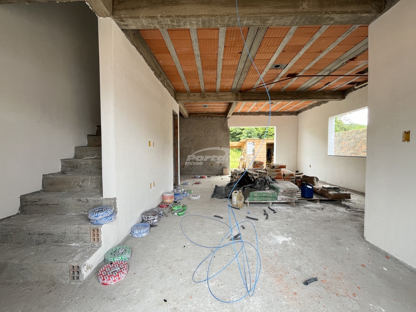 - Escada com revestimento de porcelanato;
