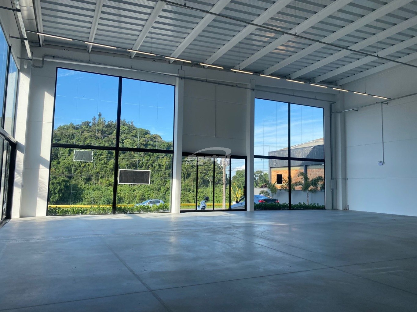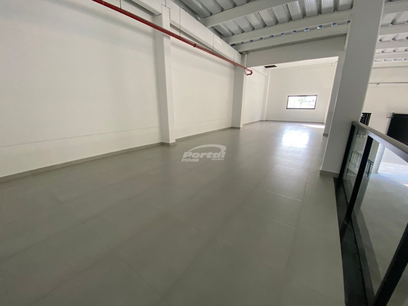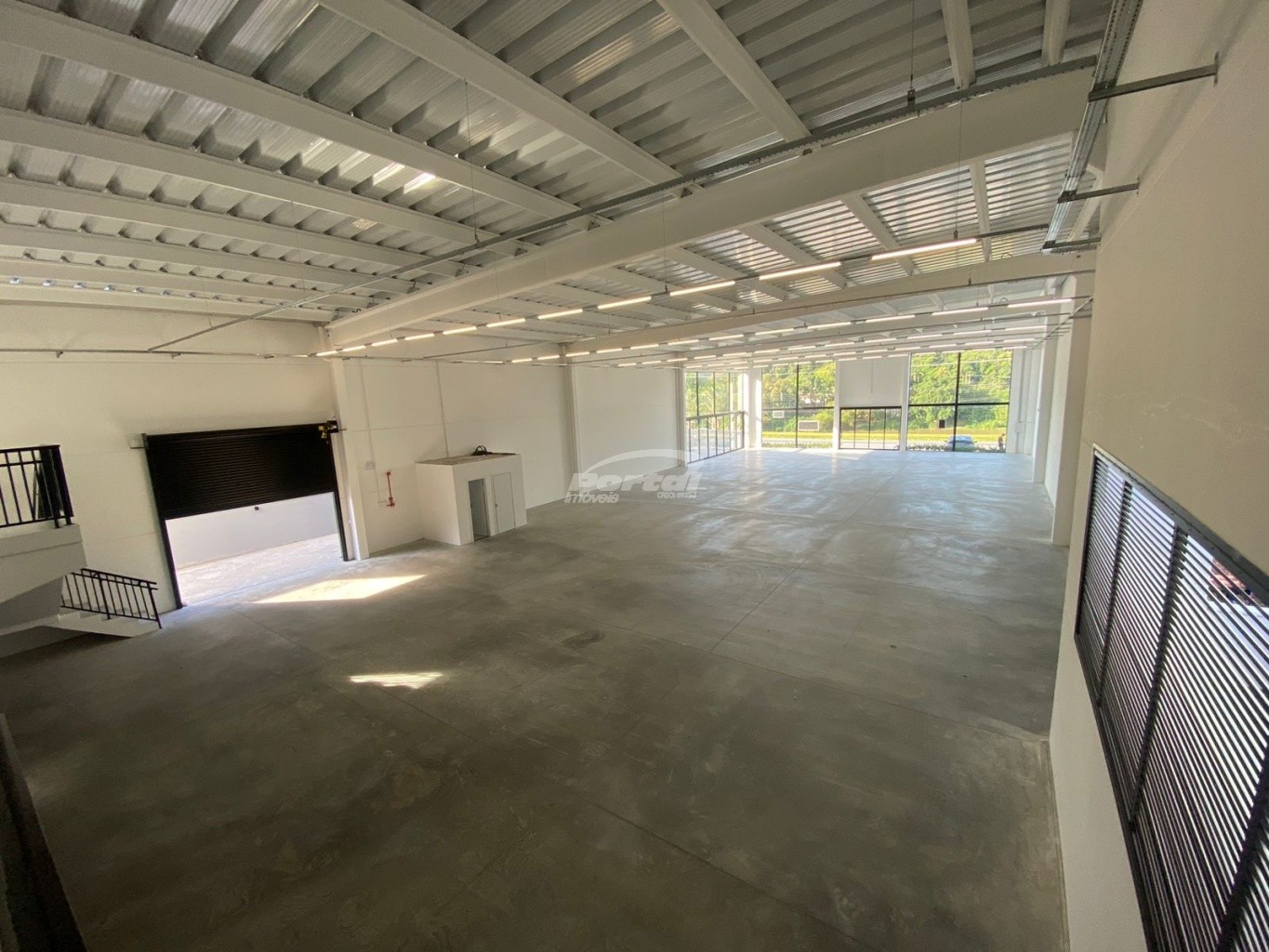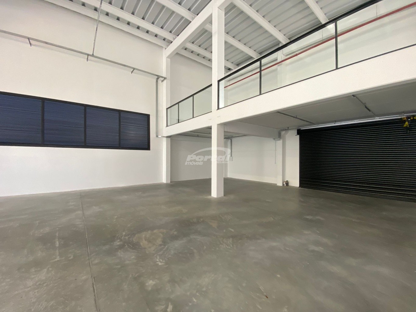 Galpão com boa altura de pé direito e vitrine.