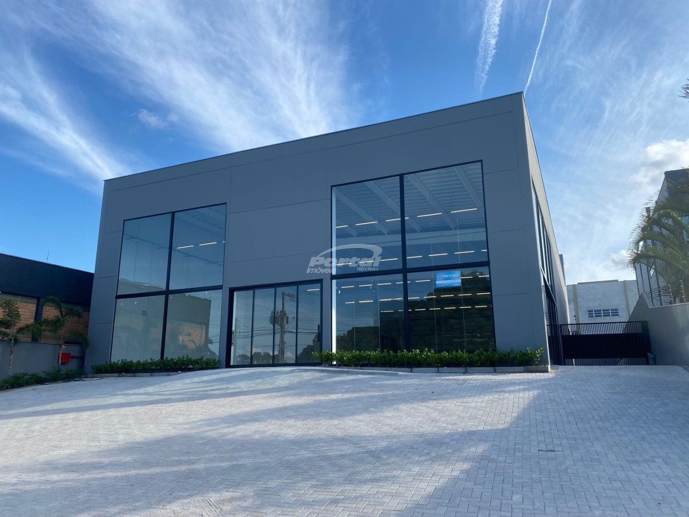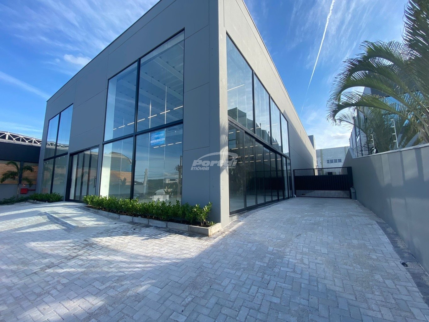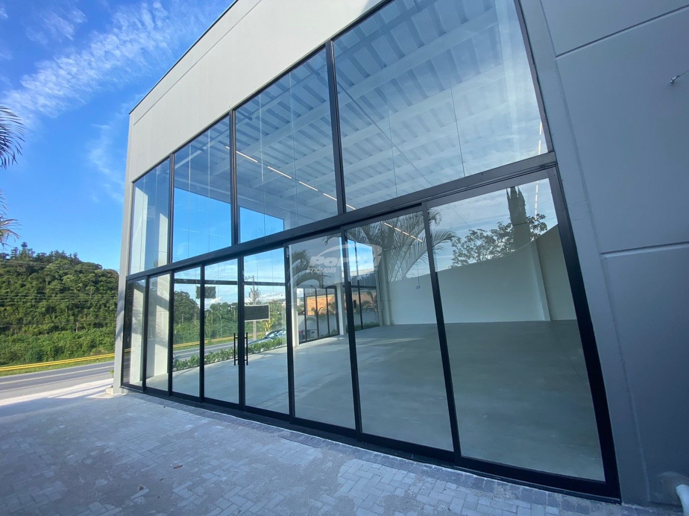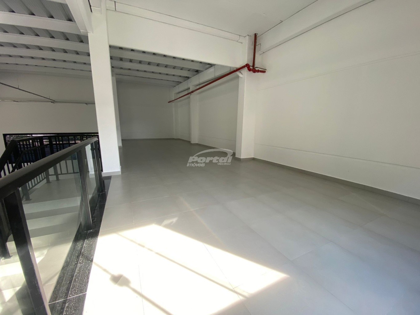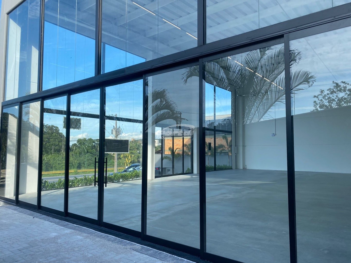 Galpão com boa altura de pé direito e vitrine.