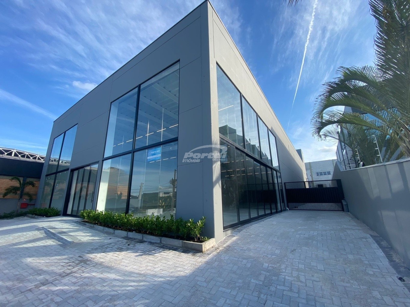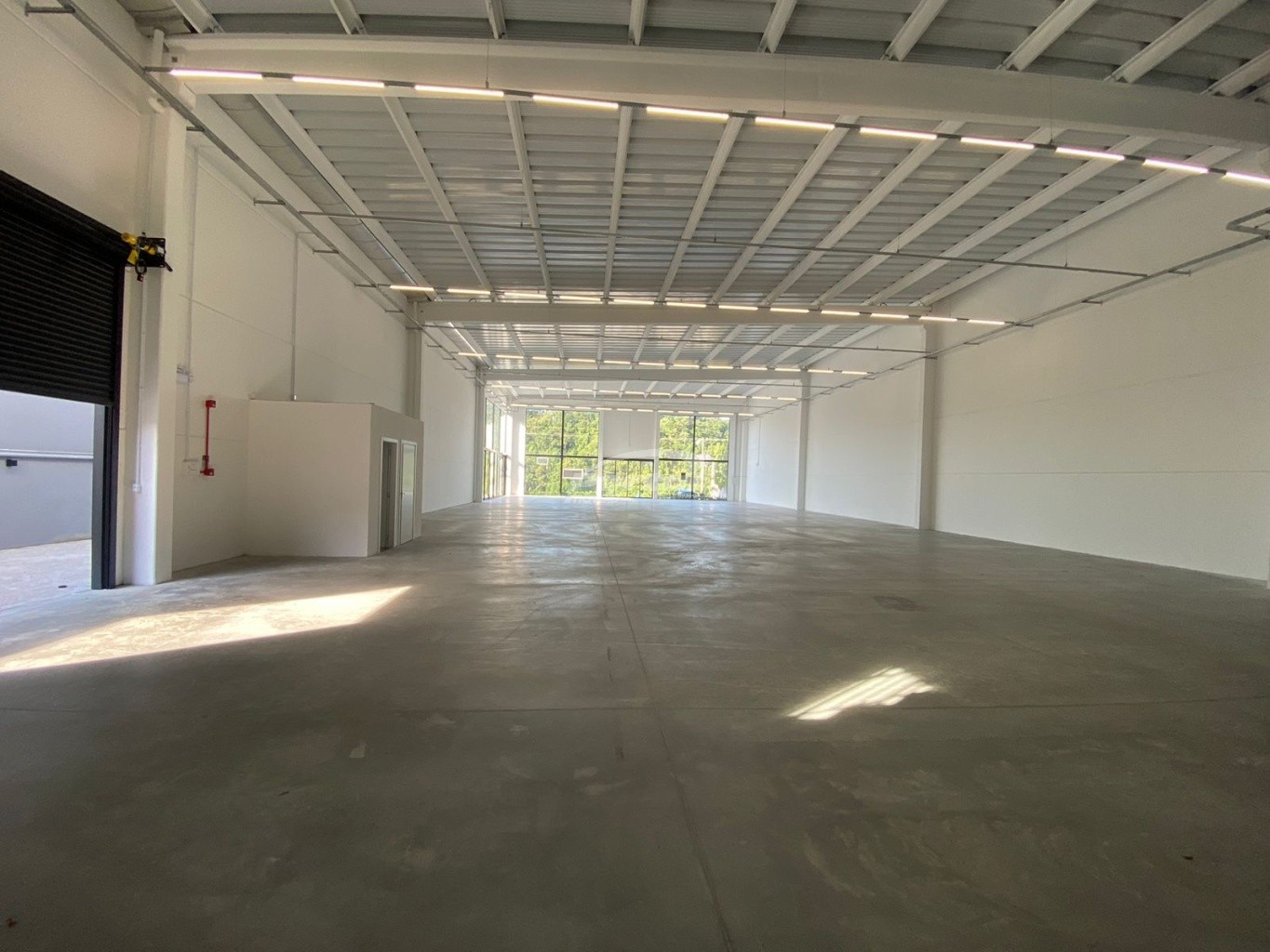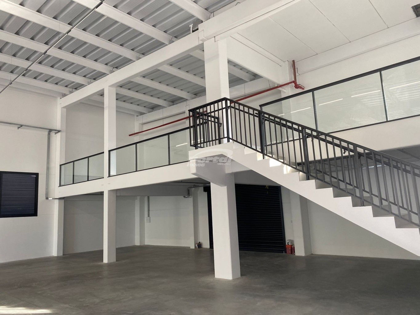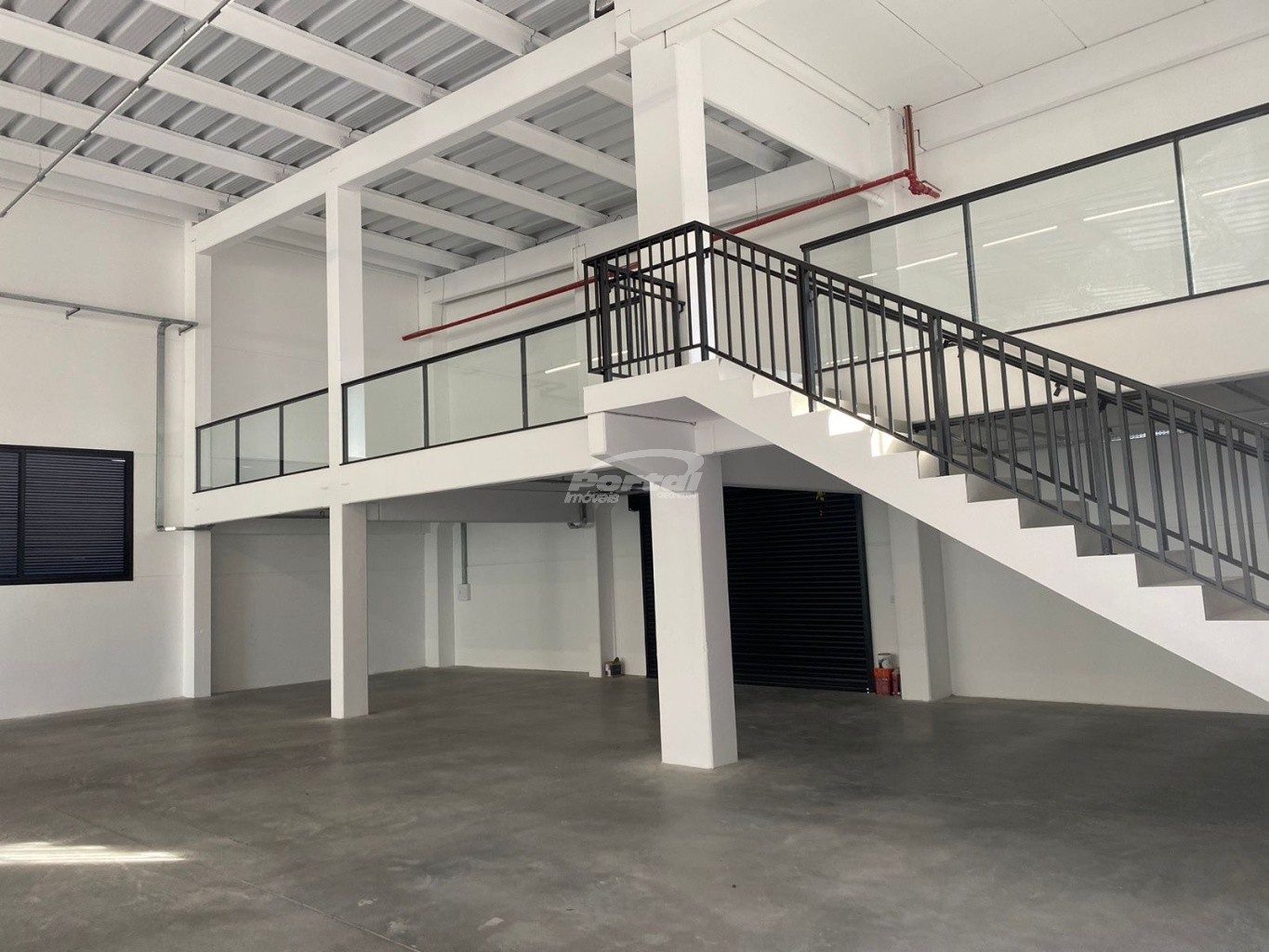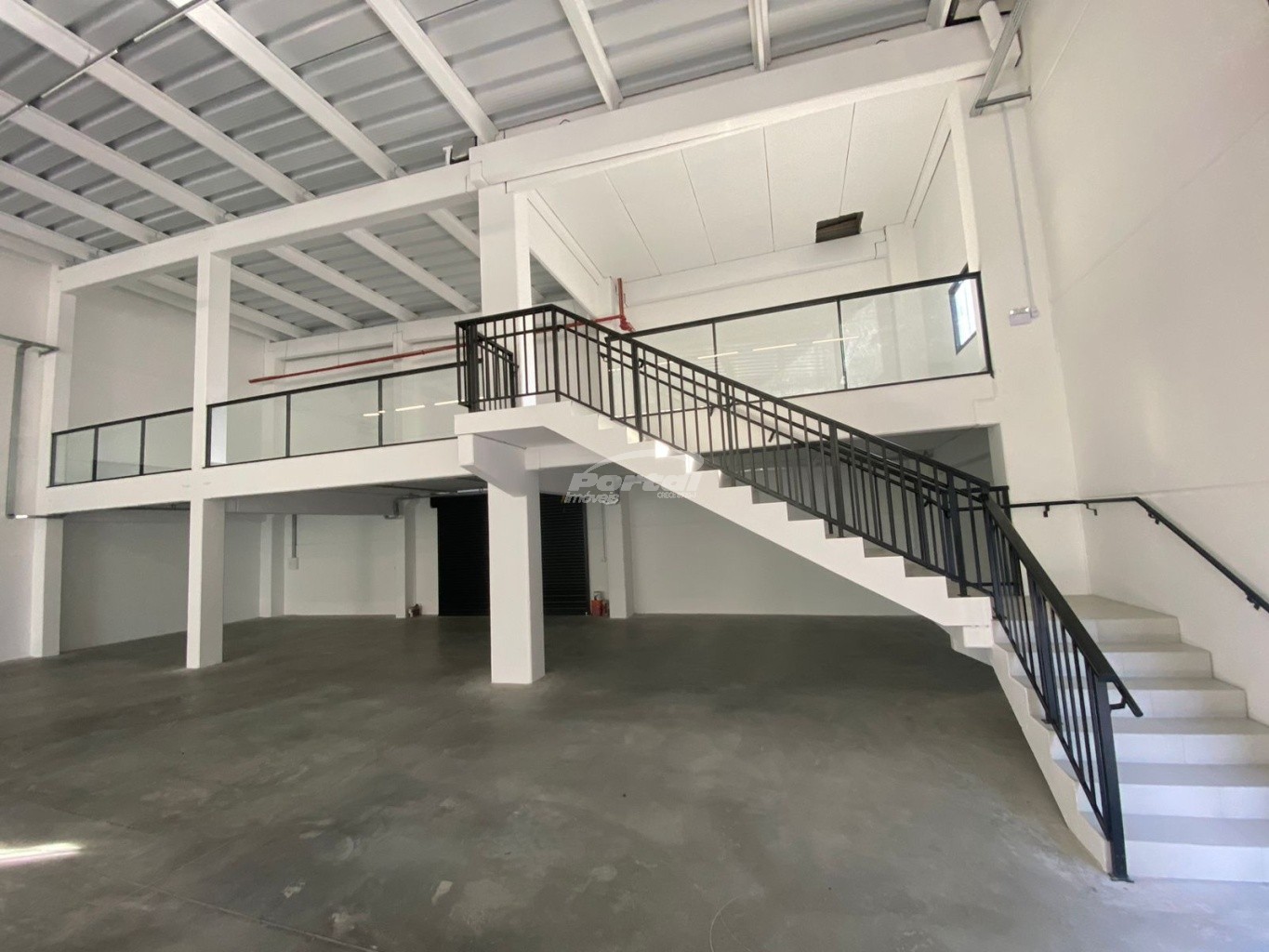 O galpão possui 933m² privativos, contendo mezanino, 2 banheiros e estacionamento.